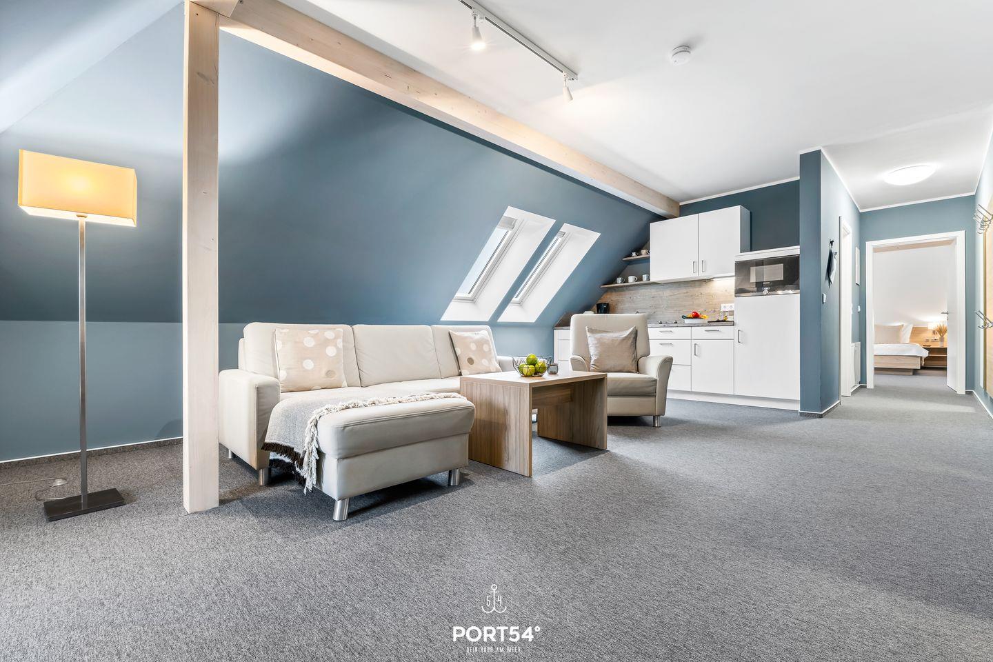 Die Wohnung ist hell und freundlich, dank großzügiger Oberlichtfenster, die viel Tageslicht hereinlassen. Sie verfügt über eine offene Wohnküche, die ideal für gemeinsame Kochabende ist. Das moderne Bad ist mit einer Dusche ausgestattet und sorgt für zusätzlichen Komfort. Im separaten Schlafzimmer finden Sie ein gemütliches 180x200 cm Doppelbett (zwei einzelne Matratzen), sowie Verdunkelungsmöglichkeiten