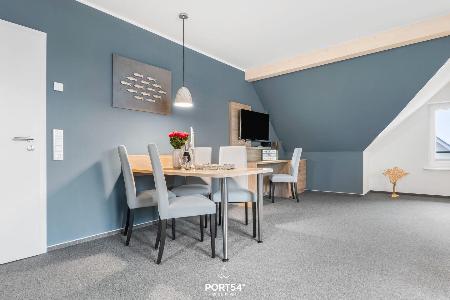 Die Wohnung befindet sich im zweiten Stock eines Geschäftsgebäudes am Deich von Dagebüll. Hier haben Sie nicht nur direkten Zugang zu den beeindruckenden Ausblicken auf die Nordsee, sondern auch die Möglichkeit, lange Spaziergänge am Deich zu unternehmen. Direkt unterhalb finden Sie gemütliche Restaurants, ein einladendes Eiscafé und die Touristeninformation, die Ihnen bei der Planung Ihrer Aktivitäten helfen kann. Die Lage ist ideal, um die Schönheit der Nordsee zu erkunden und entspannte Tage am Strand (Wattenmeer) zu genießen.