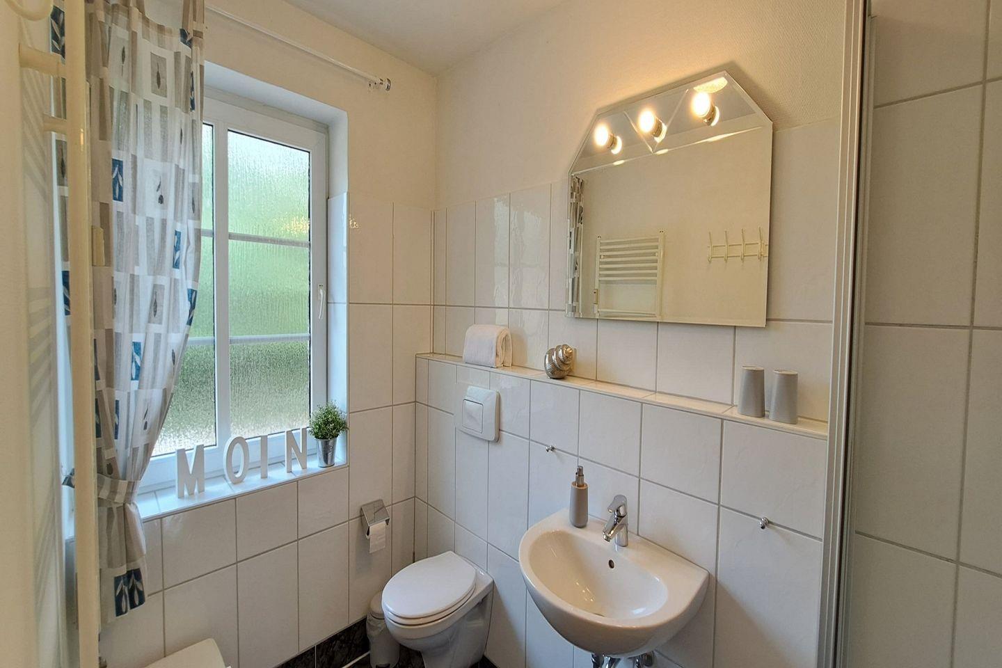 Die Ferienwohnung erstreckt sich über 44 m² und verfügt über einen offenen Wohnbereich, der eine gemütliche Sofaecke und einen Essbereich umfasst. In der voll ausgestatteten Küche finden Sie alles, was Sie für die Zubereitung Ihrer Mahlzeiten benötigen, einschließlich Herd, Backofen, Kühlschrank mit Gefrierfach sowie Geschirrspüler. Nach brausenden Tagen am Strand können Sie sich im Badezimmer mit Dusche erfrischen und die bereitgestellten Handtücher und Bettwäsche nutzen.
