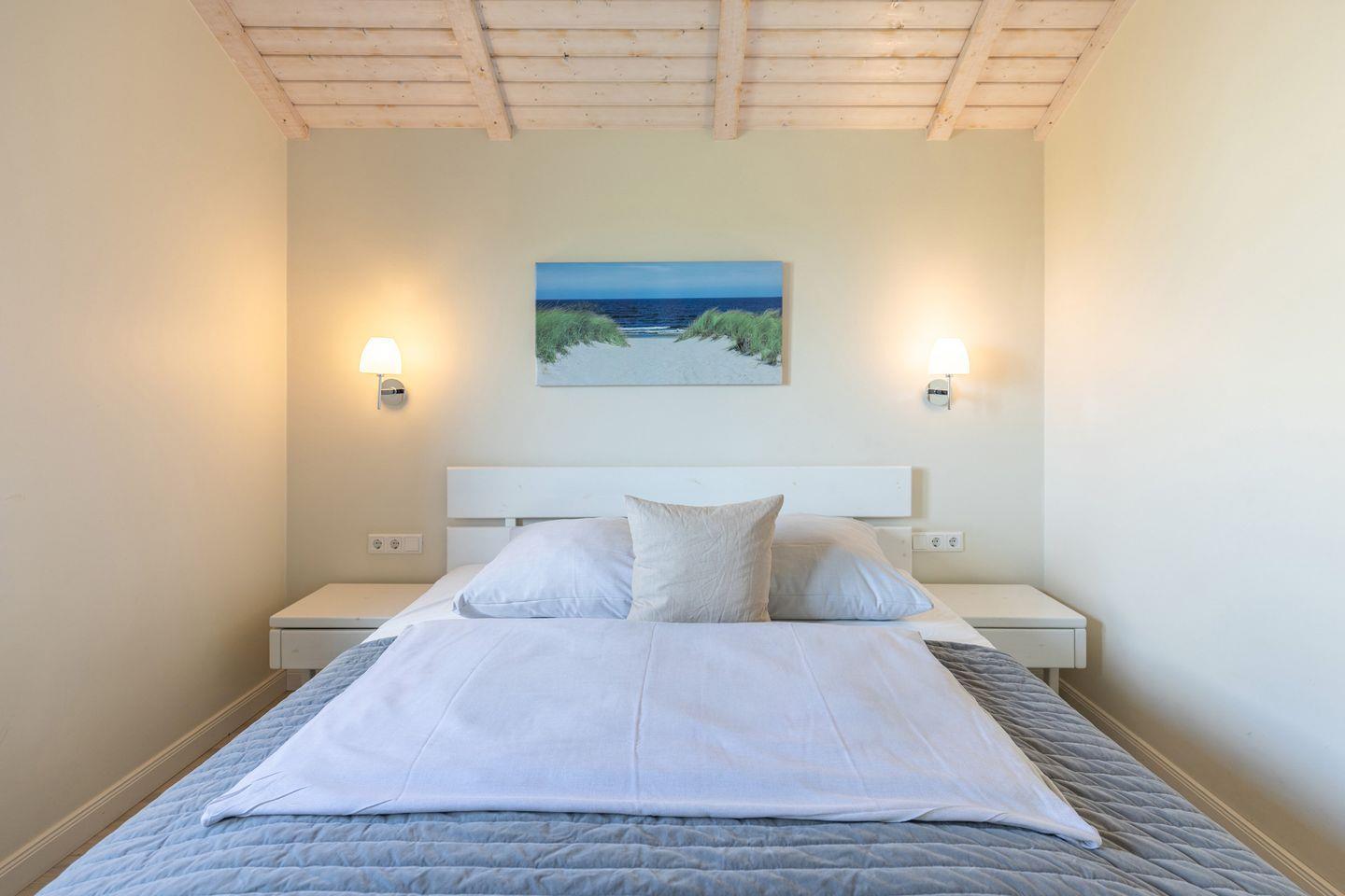Das 85 qm große Ferienhaus ist modern und exklusiv im skandinavischen Charme eingerichtet. Die zwei Schlafzimmer mit jeweils einem Komfort-Doppelbett (180 x 200 cm) bieten Platz für bis zu vier Personen. Das gemütliche Wohnzimmer ist mit SAT-TV und einem Blu-Ray-DVD-Player ausgestattet. Der Kaminofen sorgt auch in der kälteren Jahreszeit für behagliche Stunden. Die offene Küche bietet Ihnen eine exklusive und umfangreiche Ausstattung, die das Herz eines jeden Hobbykochs höher schlagen lässt: Ceranfeld mit 4 Kochplatten, Backofen, Kühlschrank mit ***Gefrierfach, Mikrowelle, Geschirrspüler, Filterkaffeemaschine uvm. Das Badezimmer lässt keine Wünsche offen: zwei Waschbecken, eine große Badewanne, eine ebenerdige Dusche und eine schöne Sauna geben Ihrem Urlaub den richtigen Rahmen. Das Ferienhaus verfügt über ein zusätzliches WC. Auf der überdachten, windgeschützten Terrasse können Sie auf bequemen Gartenstühlen, den Sonnenliegen oder im Strandkorb die Sonne genießen. In einem Hauswirtschaftsraum stehen Ihnen eine Waschmaschine und ein Trockner zur alleinigen Nutzung zur Verfügung.
