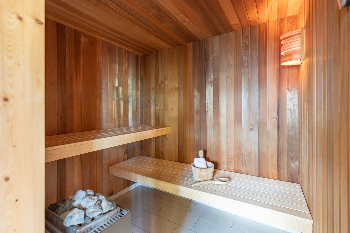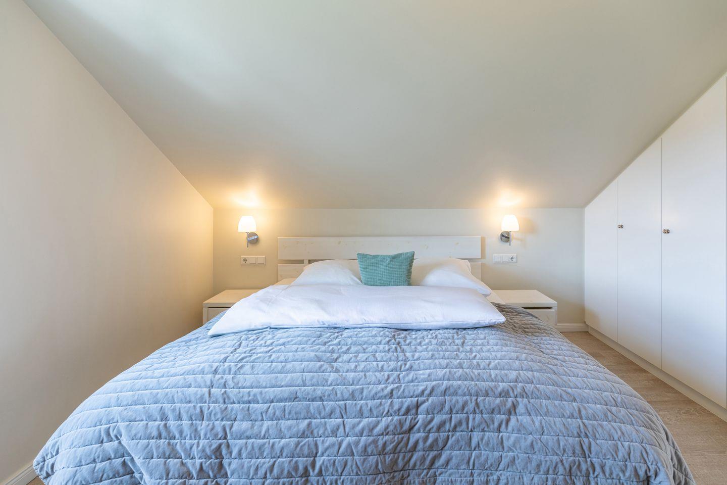 Das zweite Schlafzimmer liegt mit einem Doppelbett mit der Größe von 180x200cm im ersten Obergeschoss. Auf dieser Ebene finden Sie auch das große Badezimmer mit Dusche, Badewanne sowie zwei Waschbecken. Die Sauna rundet das Bild ab und lädt ein zum Verweilen für gemütliche Stunden. Das dritte und vierte Schlafzimmer befinden sich im zweiten Obergeschoss, eines mit jeweils zwei Einzelbetten (90x200cm) und ein weiteres Doppelbett mit der Größe von 180x200cm. Im zweiten Obergeschoss befindet sich noch ein Gäste-WC.