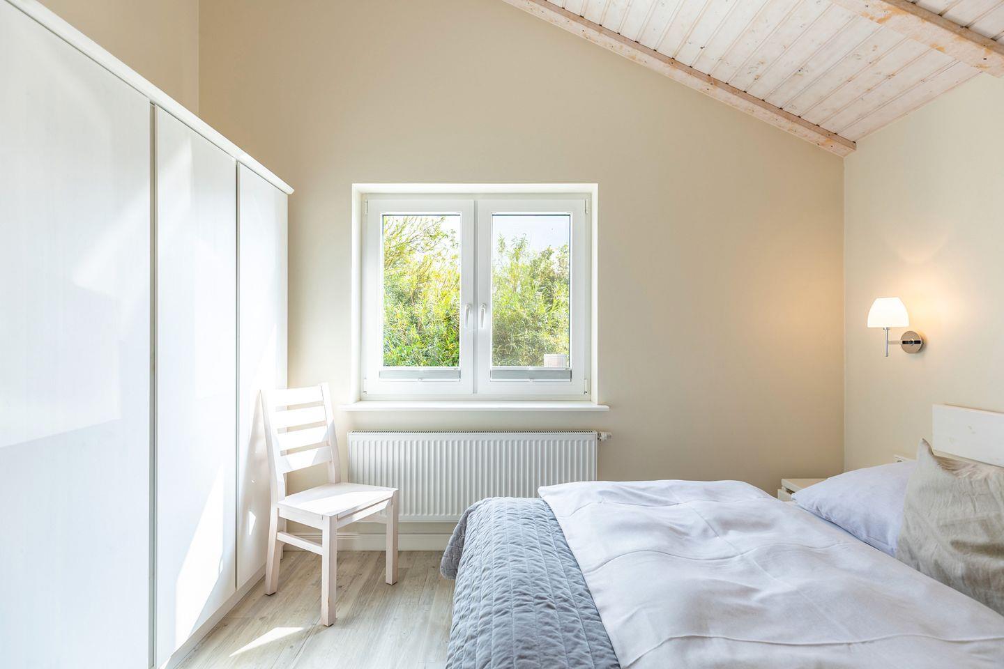 Das 80 qm große Ferienhaus ist modern und exklusiv im skandinavischen Charme eingerichtet. Die zwei Schlafzimmer mit jeweils einen Komfort-Doppelbett (180 x 200 cm) bieten Platz für bis zu vier Personen. Die Schlafzimmer sind mit Fliegengittern ausgestattet.
