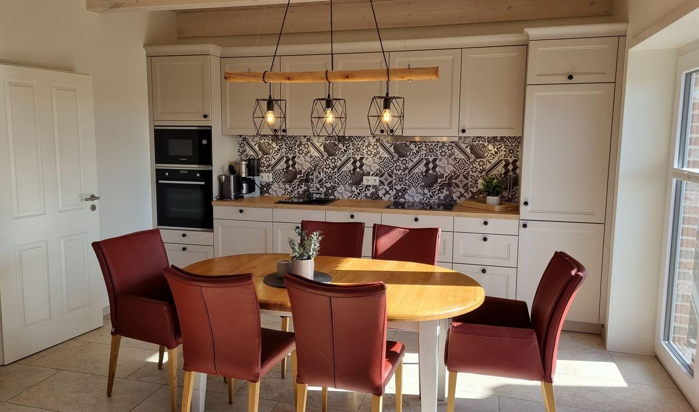 Das Ferienhaus ist besonders familienfreundlich konzipiert. Kinder sind herzlich willkommen und finden im Garten viel Platz zum Spielen. Der offene Koch- und Wohnbereich ist mit einer voll ausgestatteten Einbauküche versehen, die über Induktionsherd, Backofen, Spülmaschine, Filterkaffeemaschine, Wasserkocher, Toaster und einen Eierkocher verfügt. Ein extra Gefrierschrank mit 3 Fächern bietet ausreichend Platz für Vorräte.