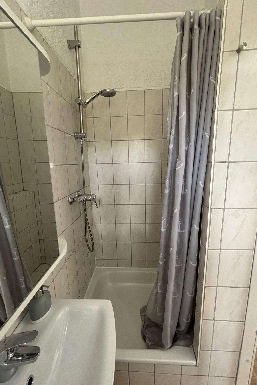 - Bathroom: Compact bathroom with shower; WC and washbasin.