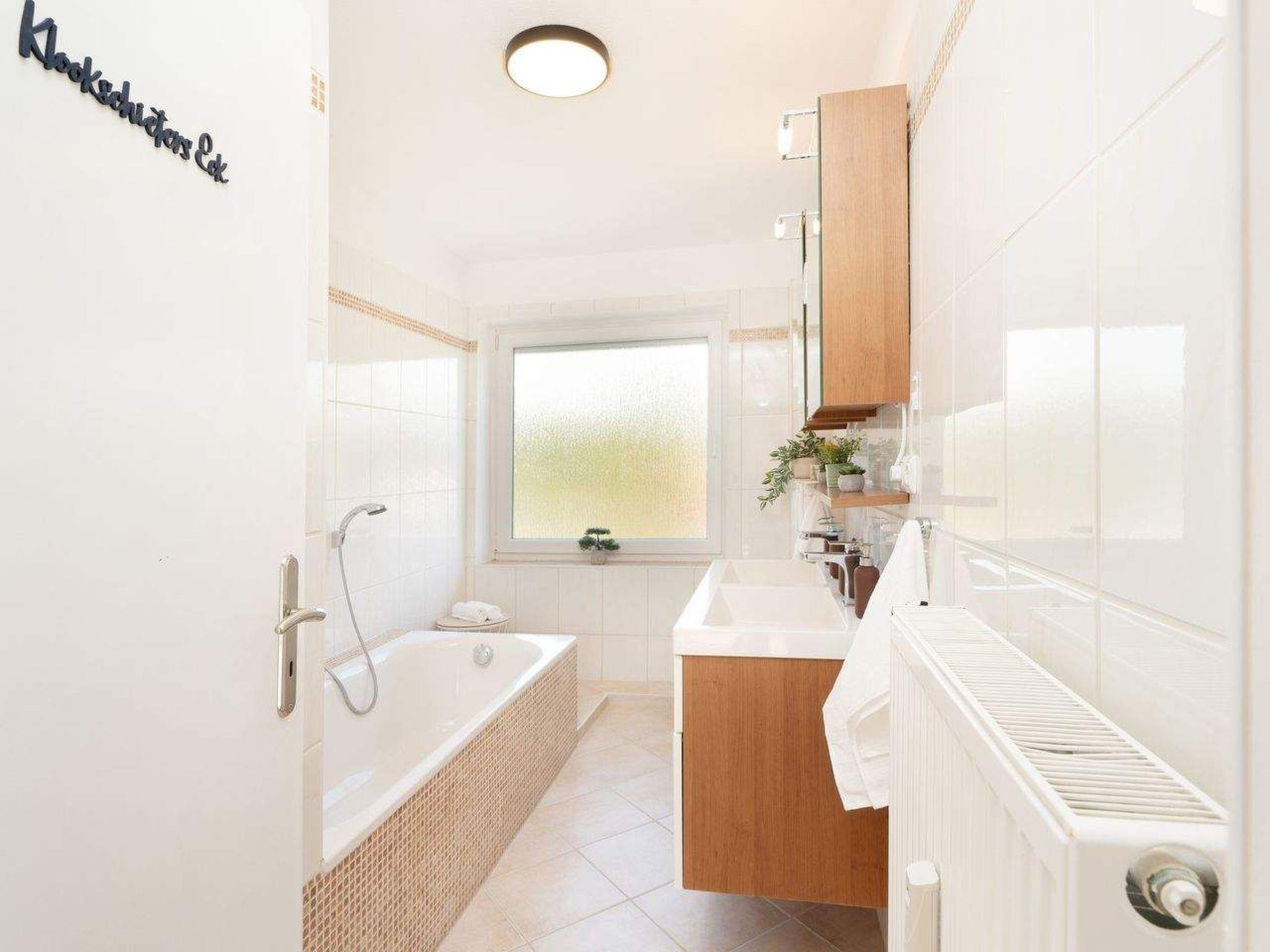 In the hallway, you will find plenty of storage space for beach utensils, jackets, shoes, etc. On the left-hand side of the hallway, you will find the cosy guest room. With the pull-out sofa bed (2 x 80 x 200 cm), the room can be converted into an additional bedroom in no time at all. Here you will find all sorts of seafaring yarn for bookworms and a smart TV for couch potatoes (streaming services included). Directly adjacent is a bright shower room with a window.