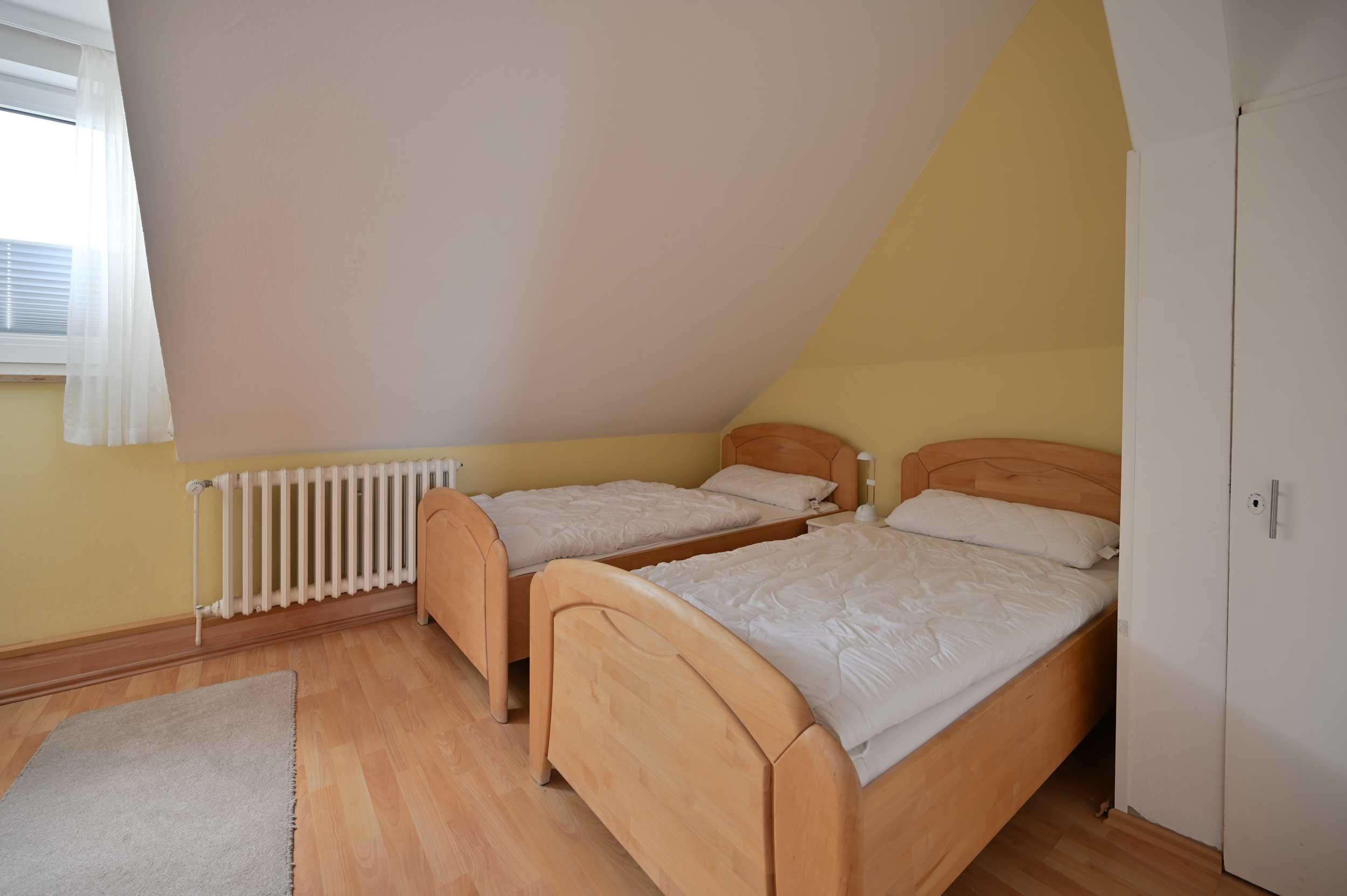 Zudem verfügt die Ferienwohnung über einen separaten Schlafraum mit zwei Einzelbetten (100 x 200cm) und Kleiderschrank.