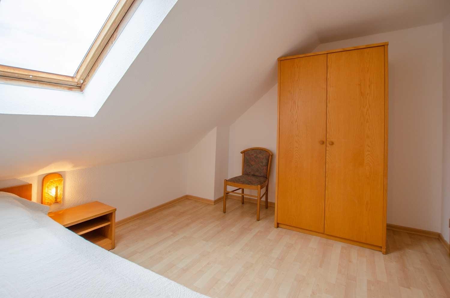 Gäste, die das Beisammensein lieben und es dennoch geräumig mögen, sind in dieser Wohnung bestens aufgehoben, denn sie ist zugleich behaglich und bequem. Das separate Schlafzimmer verfügt über ein Doppelbett, Nachttische, einen Stuhl und einen Kleiderschrank.