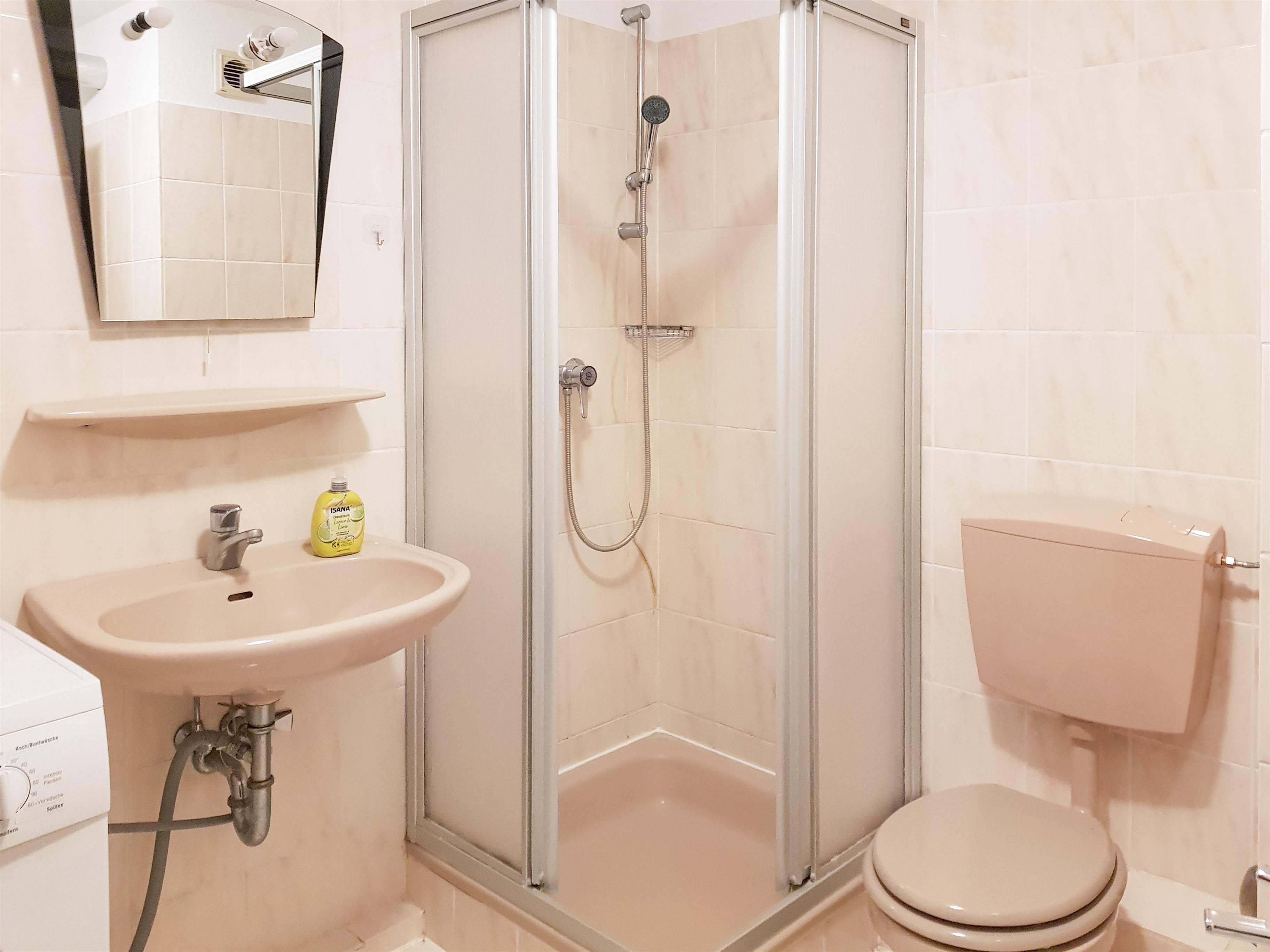 Außerdem verfügt die Ferienwohnung über ein Bad mit Dusche/WC.