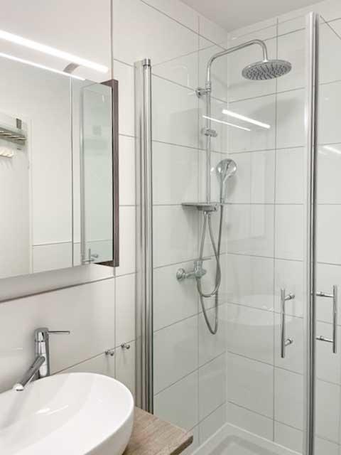 Das neue Bad ist mit Dusche und WC ausgestattet.