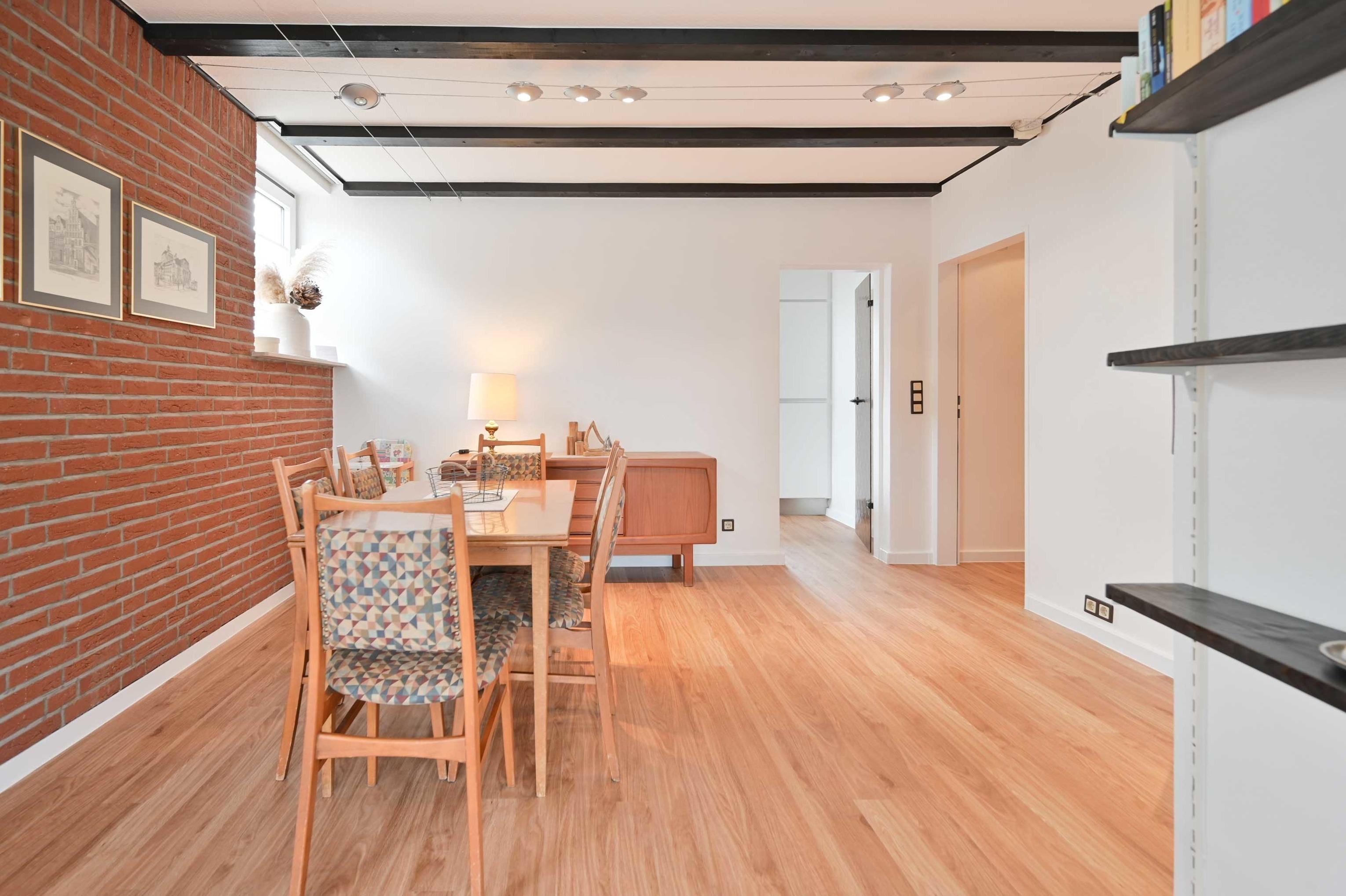 In der kompletten Wohnung ist in ein hochwertigen Venyl in Eiche - Optik ausgelegt.