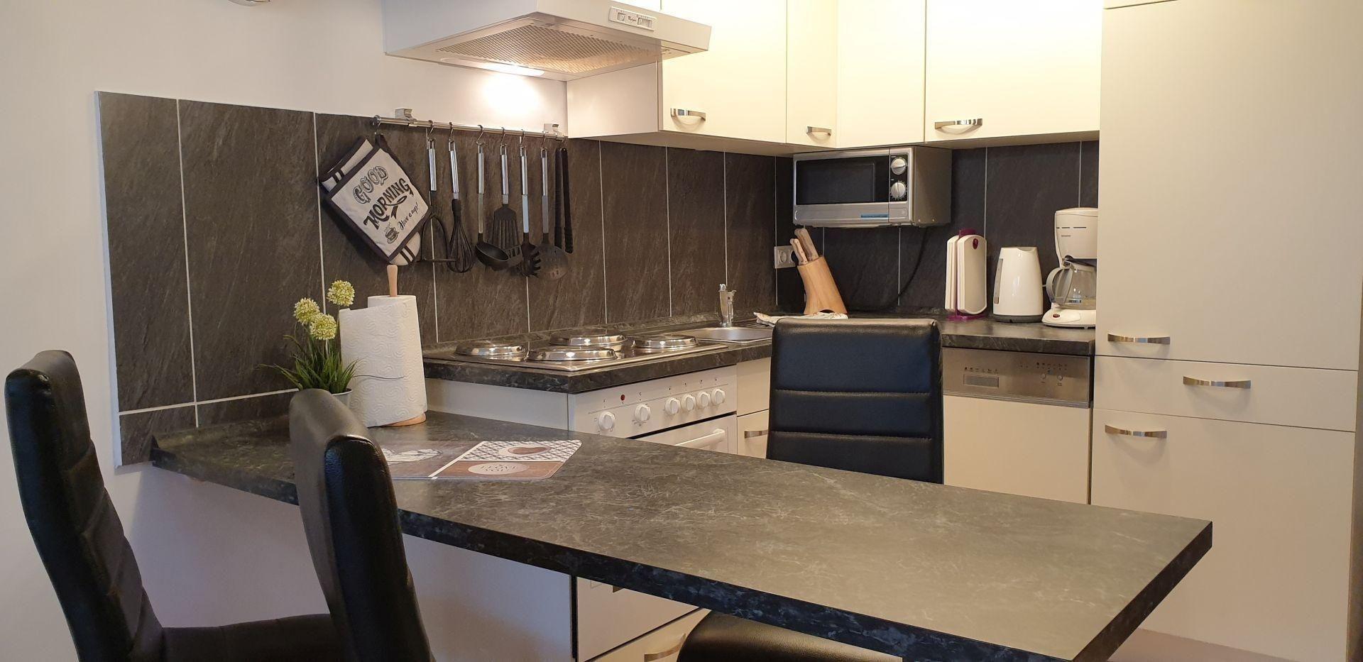 Die Küche bietet Ihnen alle Annehmlichkeiten für eine gelungene Selbstversorgung.