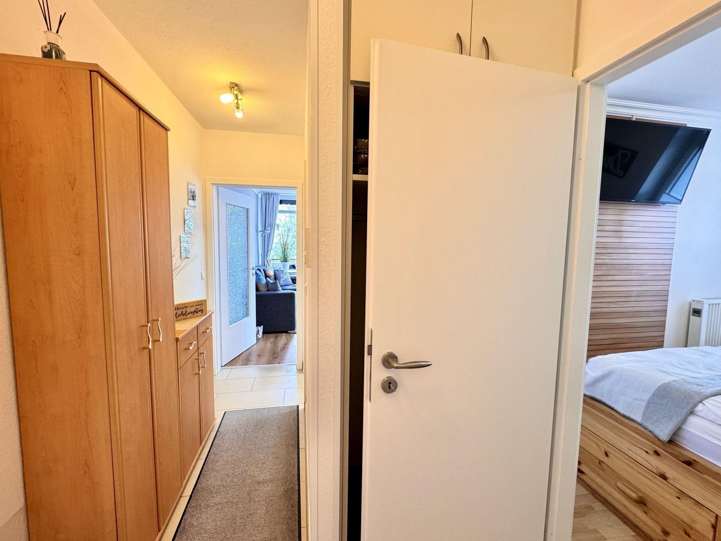 Diese schöne, helle Ferienwohnung umfasst eine Größe von ca. 41 m² und ist für bis zu 4 Personen ausgerichtet. Sie verfügt über ein großes lichtdurchflutetes Wohnzimmer mit einem gemütlichen Schlafsofa und Fernsehsessel, Smart-TV, DVD Blue-Ray-Player, eine Sony-Musikanlage mit Bluetooth-Schnittstelle sowie einem integrierten Essbereich für 4 Personen. Nordisch maritim und heimelig präsentiert sich die gesamte Einrichtung, Ostseefeeling pur! Im Flur haben Sie mit einer Garderobe und einem Kleiderschrank ausreichend Platz für Ihre Kleidung. Das hochwertige Badezimmer ist modern gestaltet und verfügt über eine Dusche, WC, sowie Waschtisch mit Spiegel und Fön. Neue Kunststofffenster & elektrische Außenrollläden runden dieses Feriendomizil ab. Zudem gibt es eine kleine separate Küche, in der man wunderbar gemeinsam kochen kann. Zu der gründlichen Ausstattung gehören Annehmlichkeiten wie eine Dolce Gusto Kaffeemaschine, ein Toaster, Wasserkocher, Elektrogrill, Kühlschrank, Gefrierfach, Ceranfeld, Brotschneidemaschine, Backofen und eine Mikrowelle. Im separaten Schlafzimmer mit Doppelbett genießen Sie erholsame Nächte, hier können Sie sogar über den Smart-TV noch gemütlich Ihren Film im Bett zu Ende schauen.