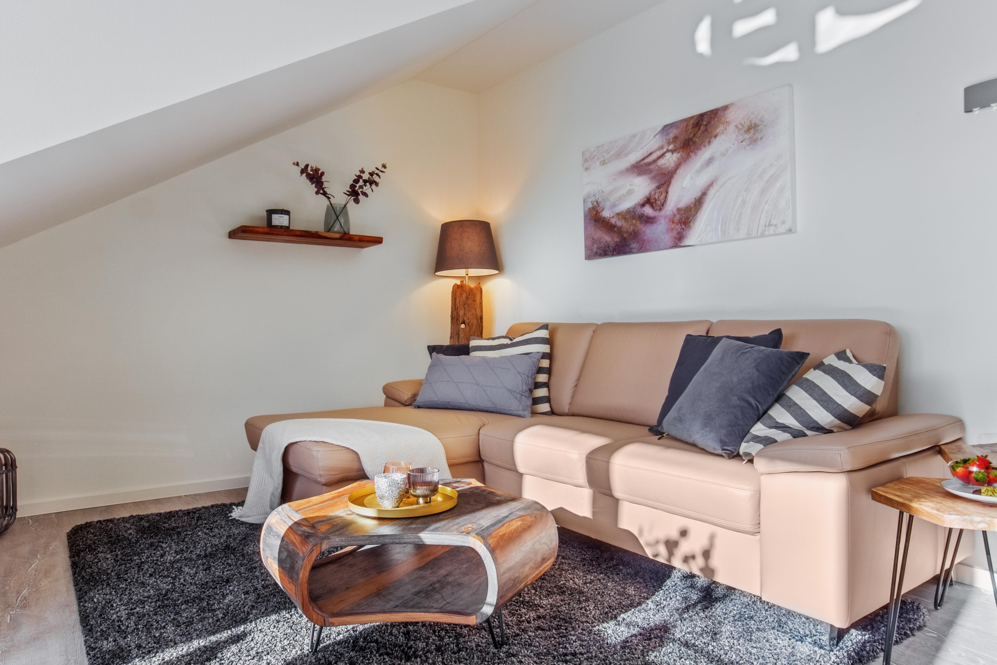 Die Ferienwohnung ist sehr hochwertig, stilsicher und gemütlich eingerichtet – sie grenzt mit