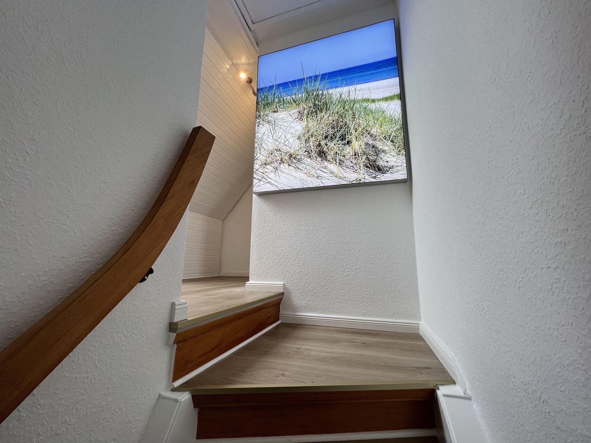 Ankommen und Wohlfühlen... geschmackvoll und perfekt bis ins kleinste Detail empfängt Sie im 1. OG das heimelige Wohnzimmer mit direktem Zugang zum großen Süd-Balkon und wunderbarem Blick über Dahme bis hin zum Leuchtturm Dahmeshöved, eine moderne voll ausgestattete Küche, ein großzügiger Essplatz für 8 Personen, ein modernes WC mit Dusche und ein Abstellraum.