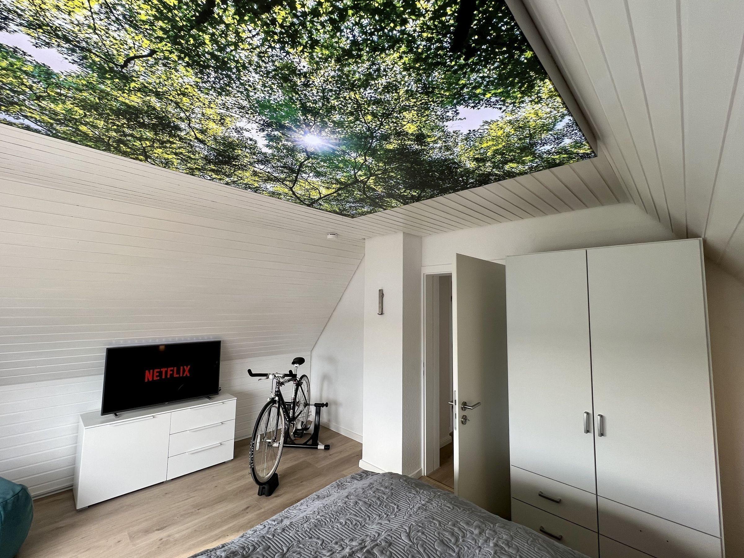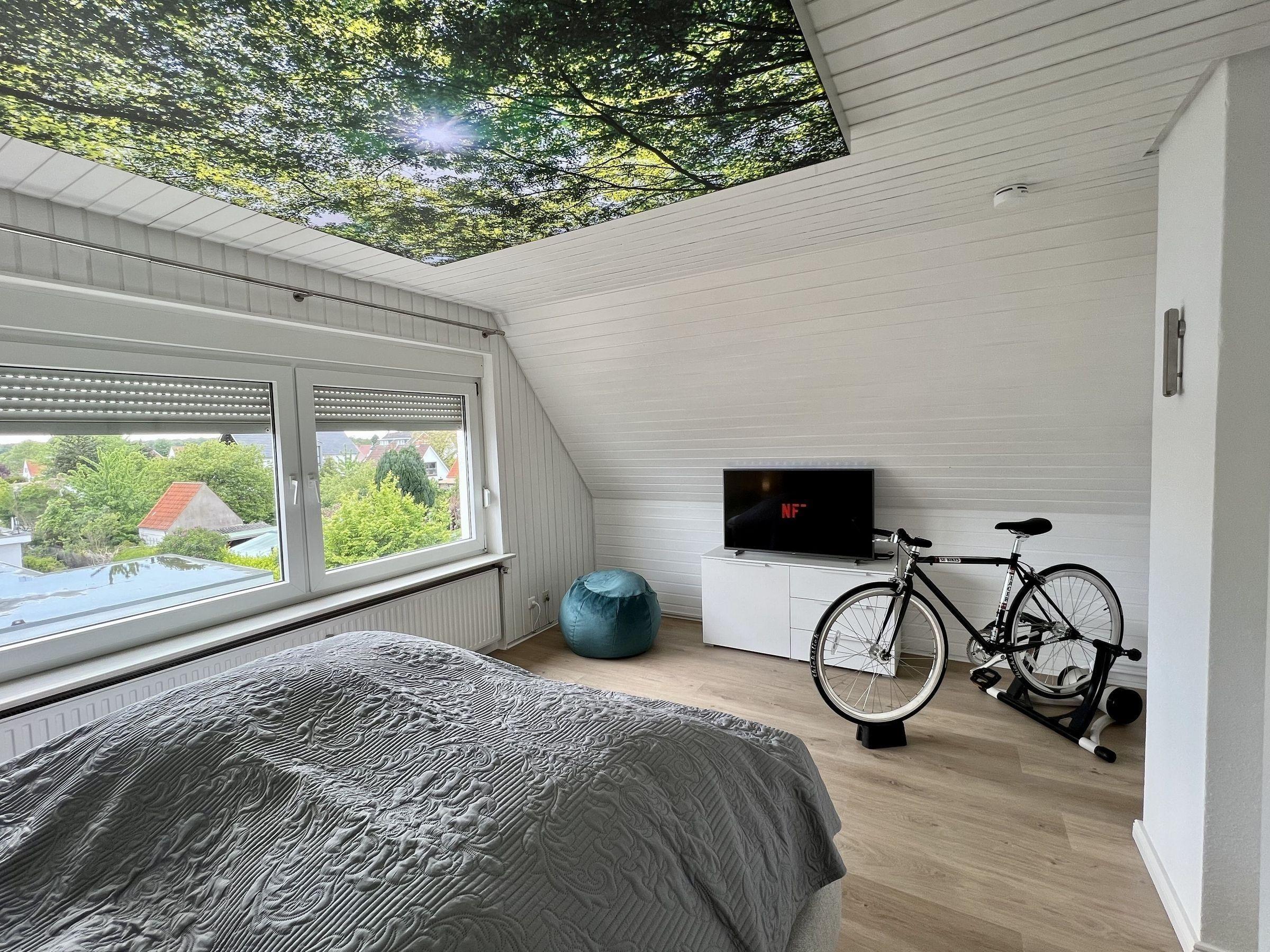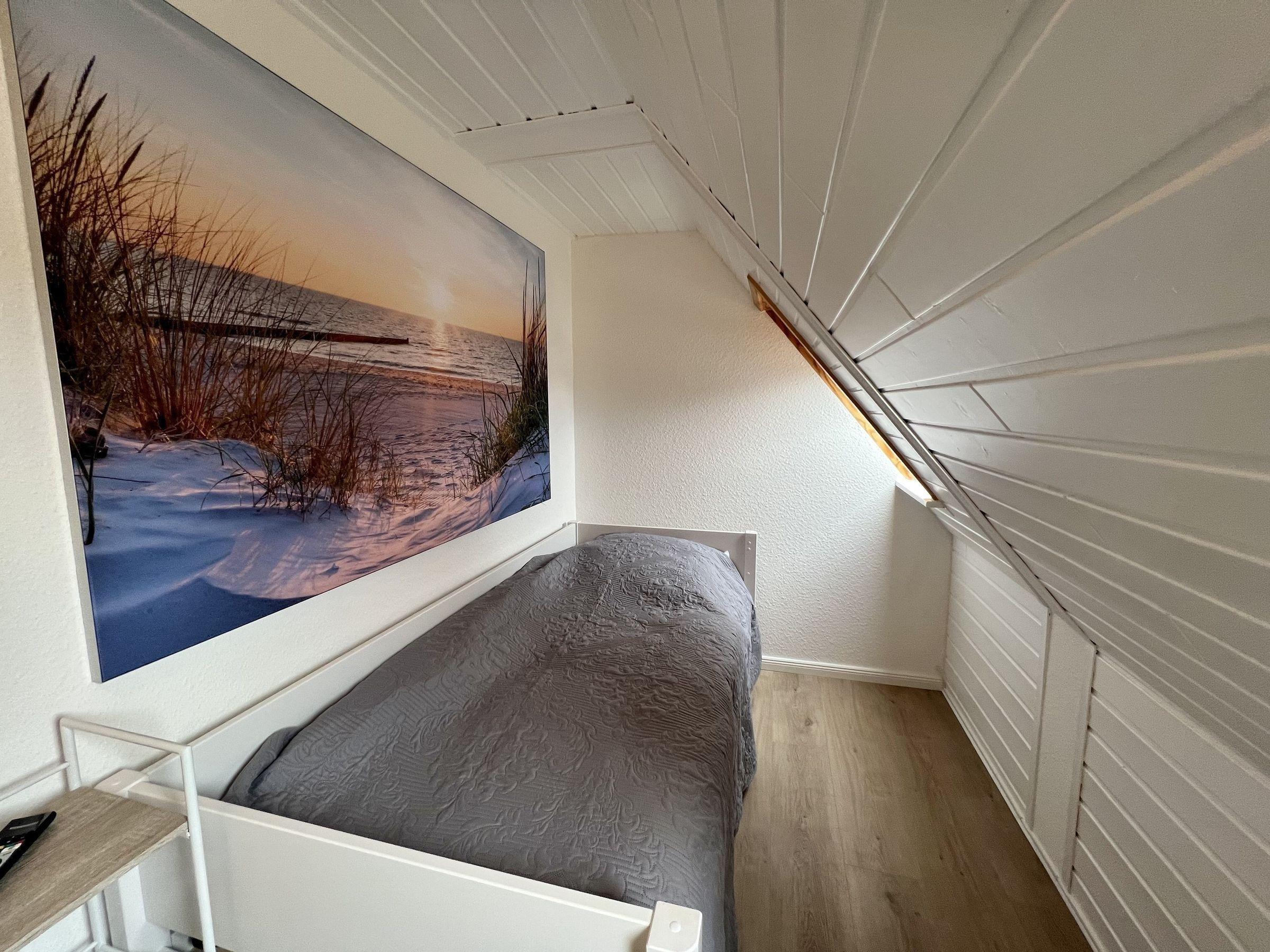Über eine Holztreppe gelangen Sie ins 2. OG, dort befinden sich drei Schlafräume: zwei mit jeweils einem Doppelbett und ein Schlafraum mit zwei Einzelbetten.