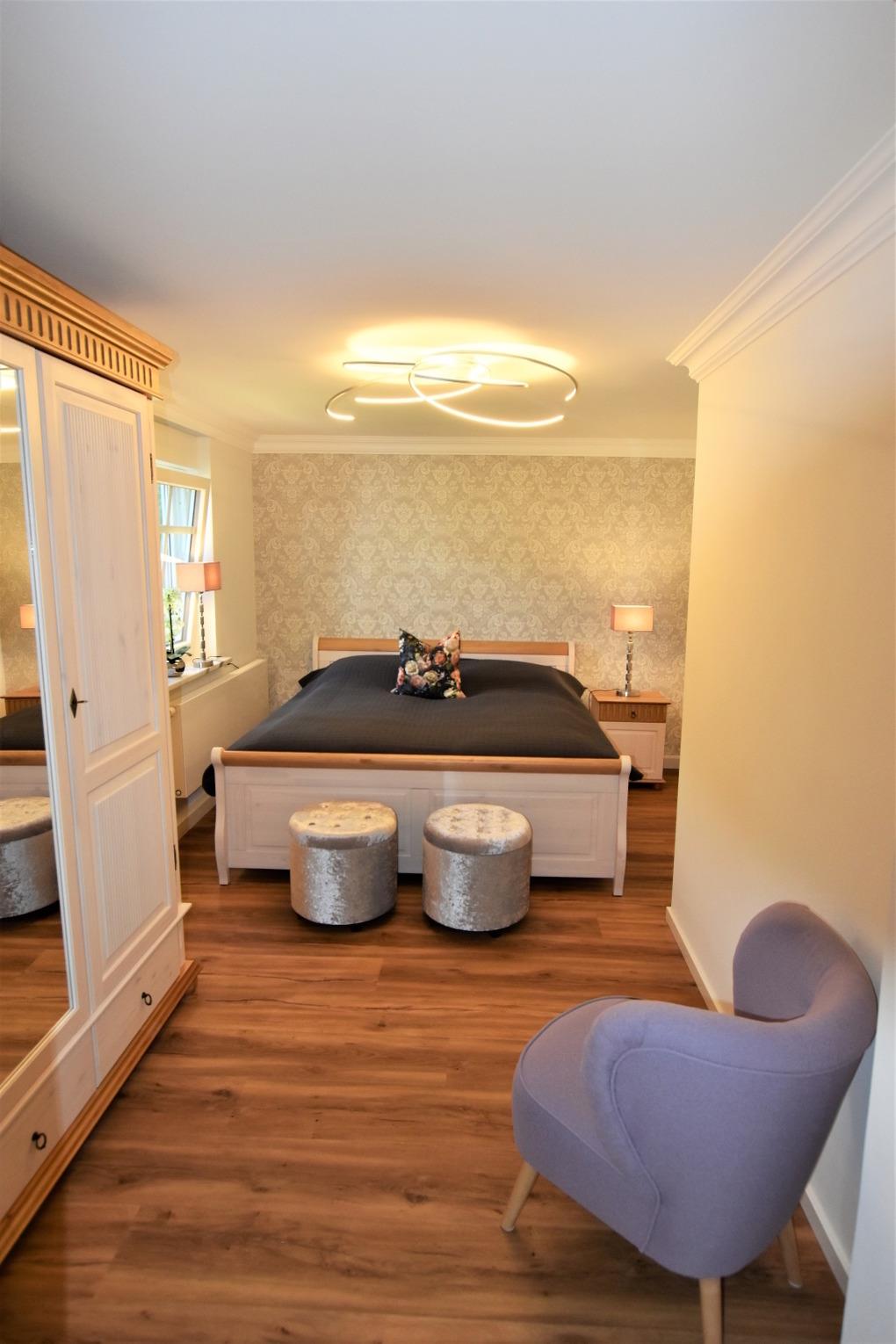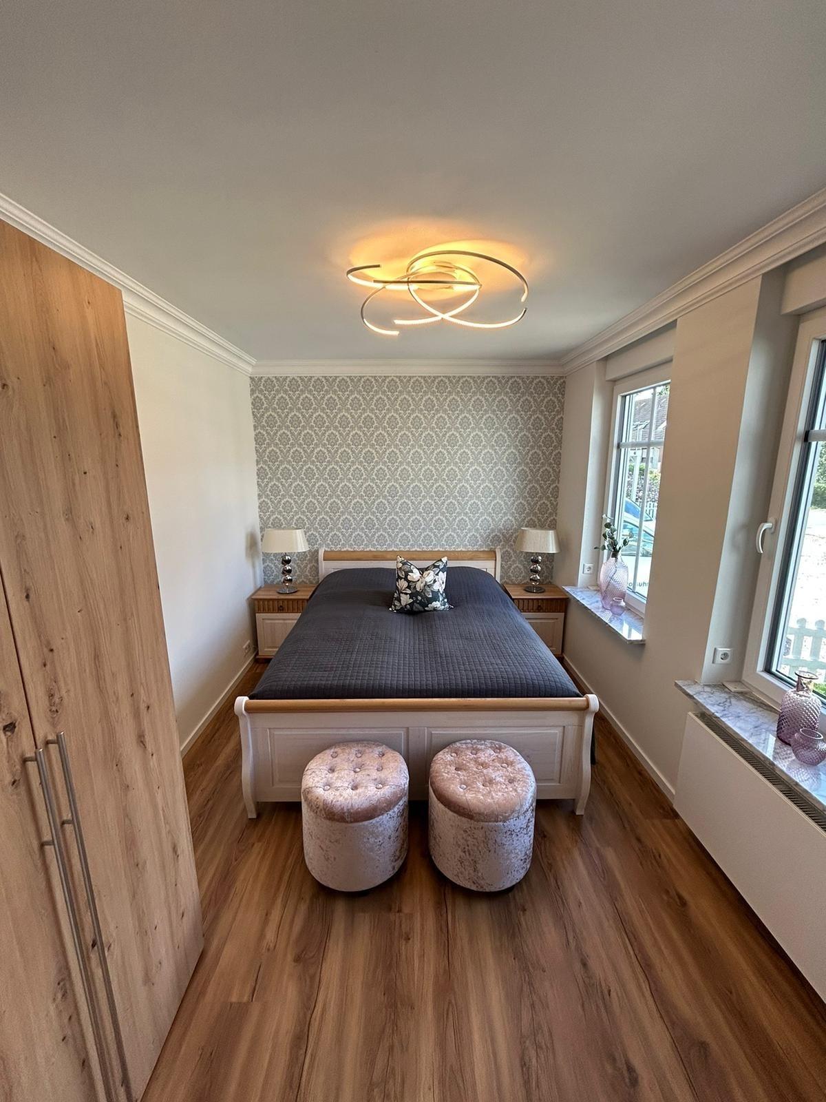 Schlafzimmer 1 mit Doppelbett (2x90x200 cm), Kleiderschrank.