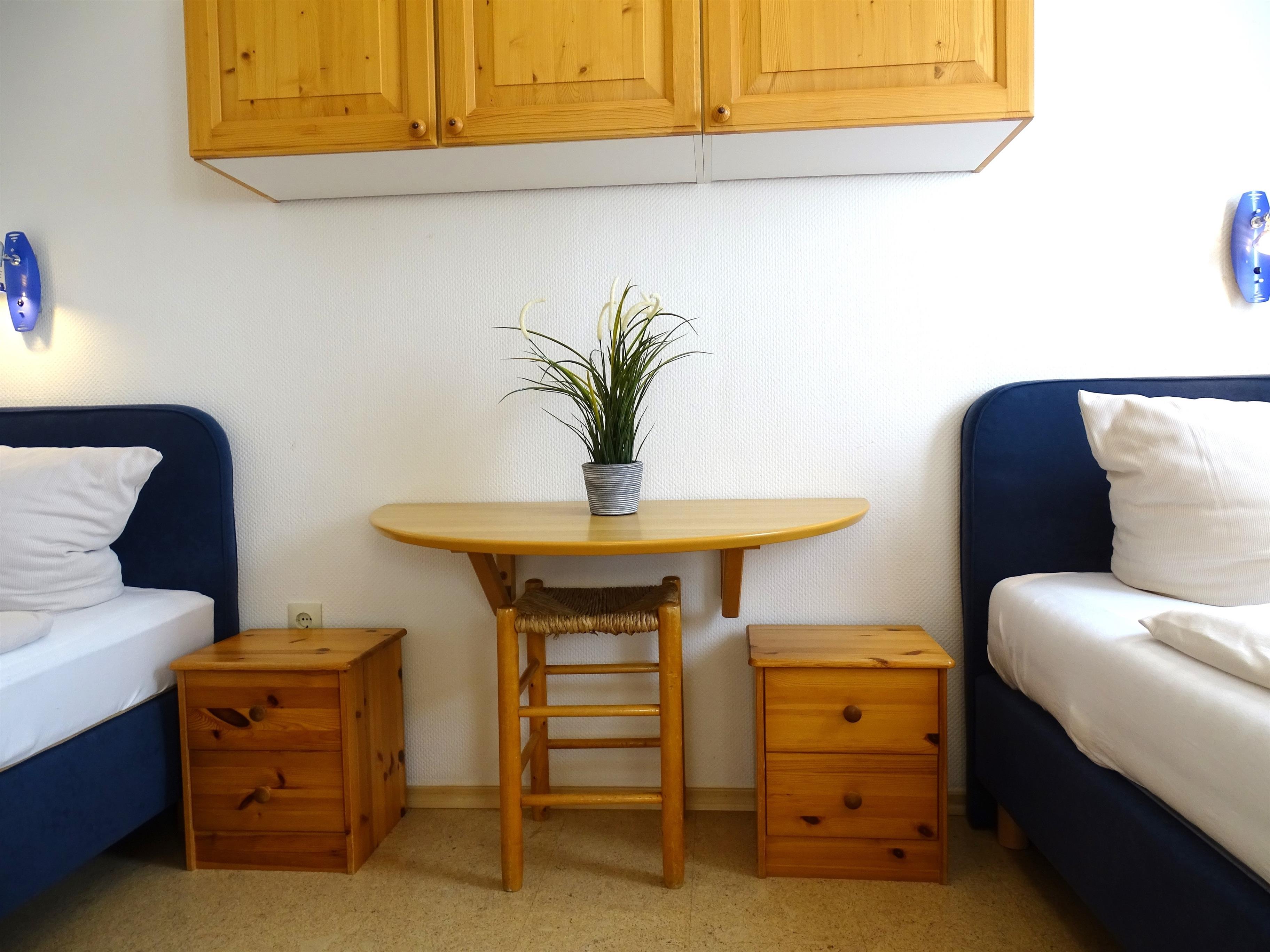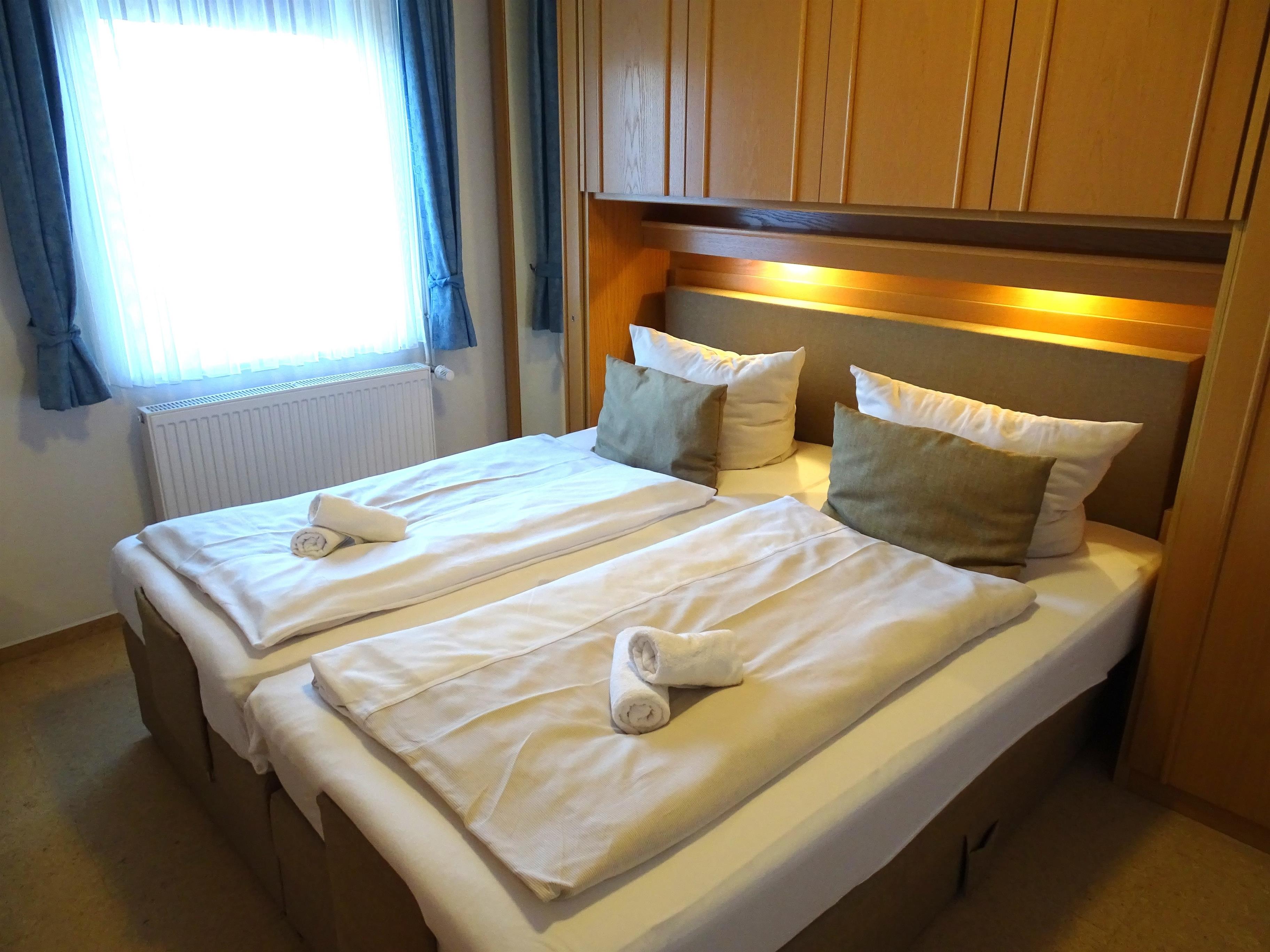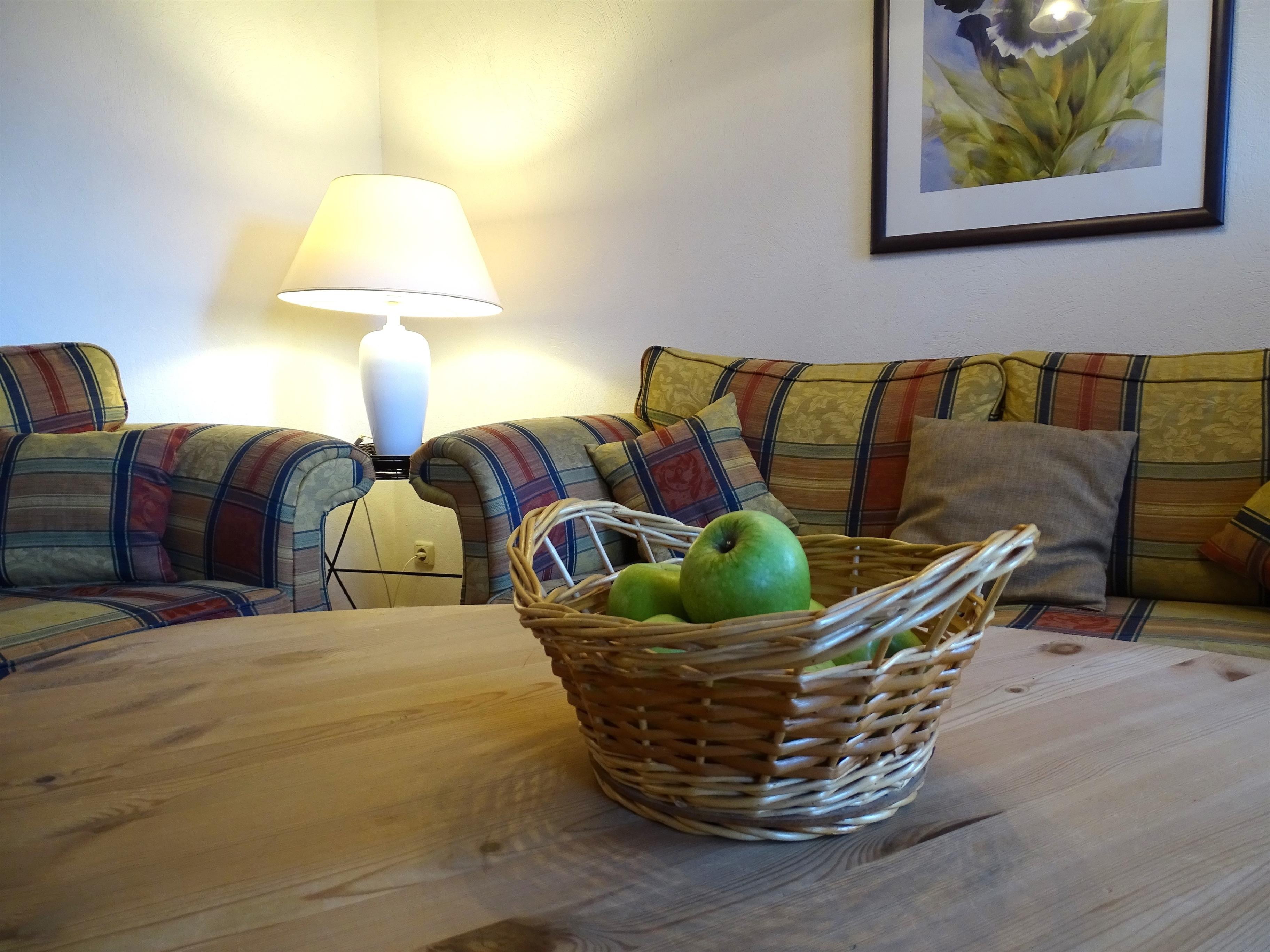Die 3- Zimmer Ferienwohnung befindet sich im Erdgeschoss des Hauses. Aufgeteilt ist sie in: 2 komplett eingerichtete Schlafzimmer mit Doppelbetten und verstellbaren Gesundheitsrahmen und Federkernauflage. Gemütliches Wohnzimmer mit Sitzgruppe, Eßtisch und integrierter Einbauküche mit dem Ausgang zur möbilierten Südterrasse. Einbauküche voll eingerichtet mit Kühlschrank, Geschirr, 4-Plattenherd mit Backofen, Spülmaschine, Toaster, Kaffeemaschine usw.