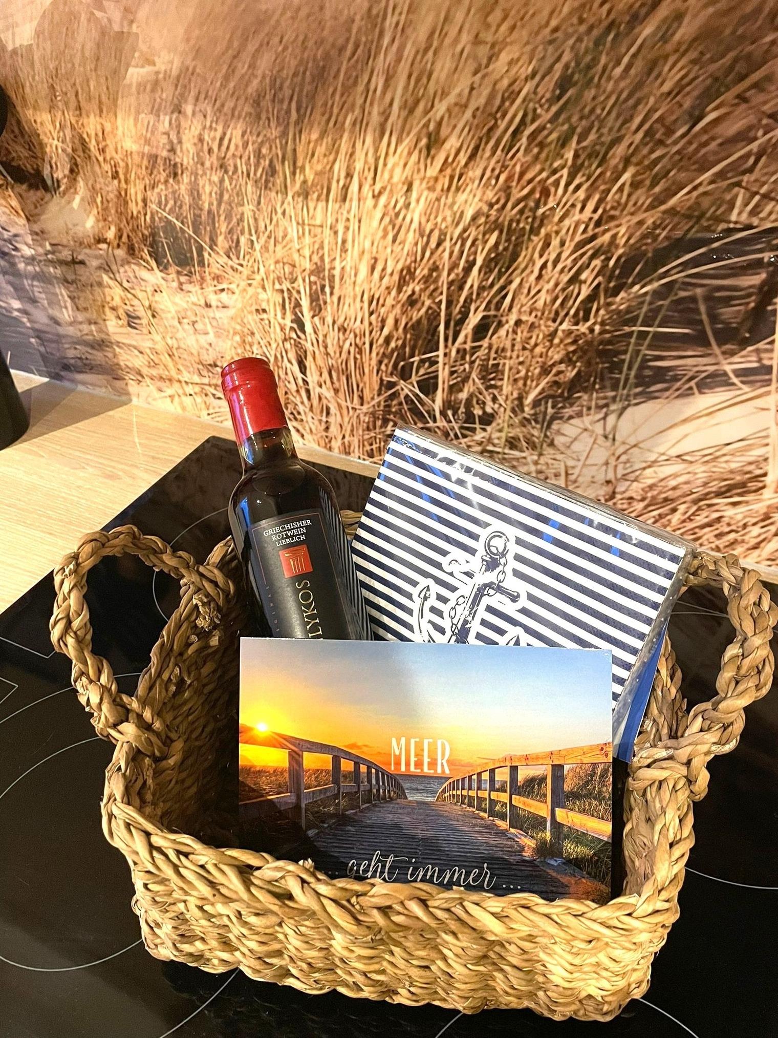 Sie verfügt über 1 Schlafzimmer mit Boxspringbett (180x200cm), Kommode und TV Gerät. Hier ist auch noch ausreichend Platz für ein Kinderreisebett. Das Wohnzimmer ist mit einer TV- Wand und Couchgarnitur sowie Zugang zur möblierten Terrasse mit Gasgrill ausgestattet. Die komplett ausgestattete Küche mit offenem Esszimmer mit TV lässt keine Wünsche offen, neben Kühlschrank mit Gefrierfach befinden sich Backofen, Ceranfeld, Geschirrspüler und Mikrowelle in ihr. Das Badezimmer ist mit begehbarer Dusche,Badewanne, Handtuchheizkörper, Fußbodenheizung und WC ausgestattet. Als Fußbodenbeläge sind ein Vinylboden in der Küche, Bad und Flur und in den Wohnräumen Laminat verlegt. Vor dem Haus befindet sich ein eigener Kfz- Stellplatz. Fahrräder können in der Holzhütte untergestellt werden. Für Hundebesitzer sind der nahegelegene Wald und der Hundestrand im Süden des Ortes ideal.