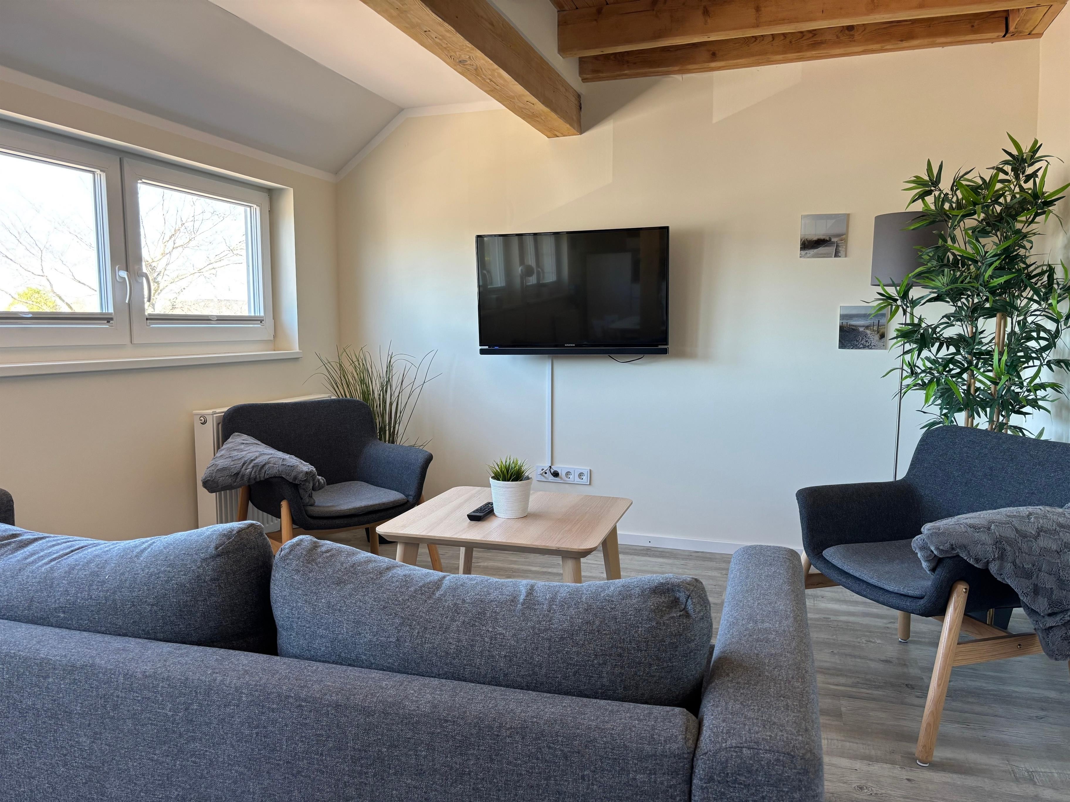 Ein moderner Fernseher mit Kabel-Digital Anschluss und W-LAN sind vorhanden und im Preis inbegriffen.