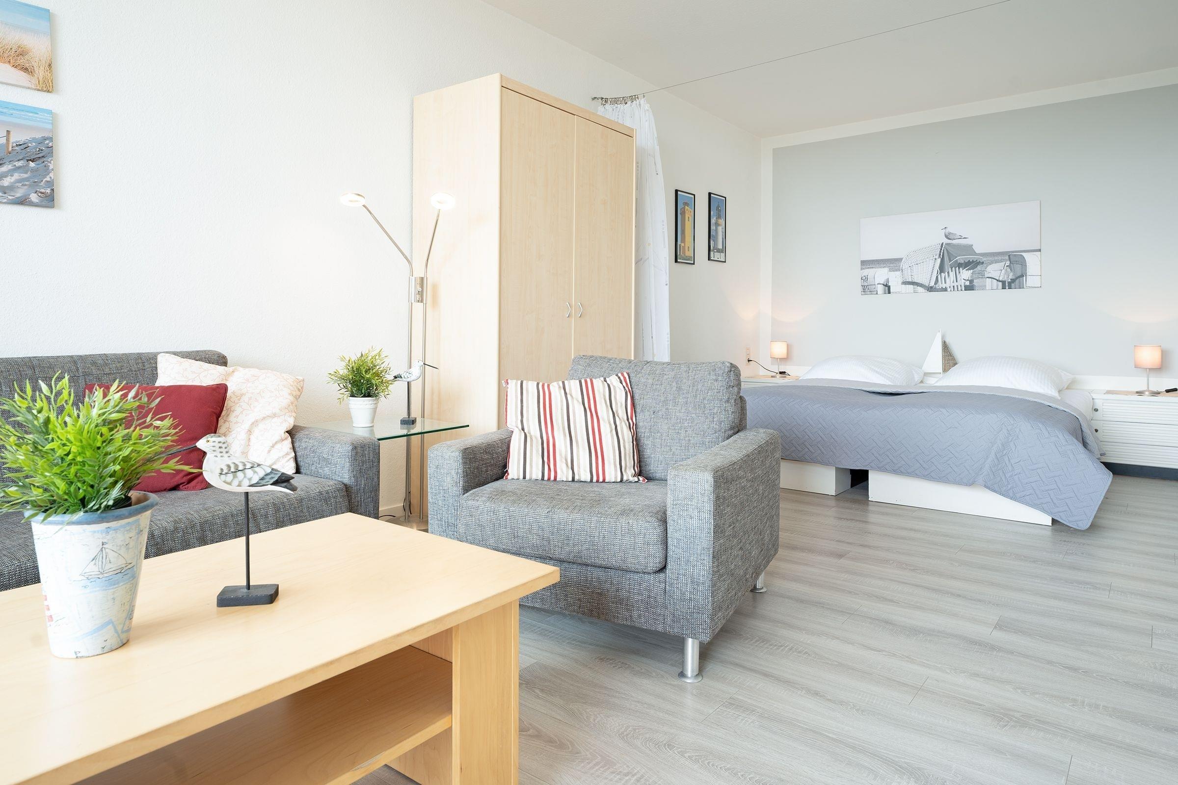 Diese hell eingerichtete 2-Zimmer-Ferienwohnung mit Balkon befindet sich in der 4. Etage der Apartmentanlage Berolina. Mit einer Wohnfläche von ca. 46 m² ist diese Unterkunft für max. 4 Personen geeignet.