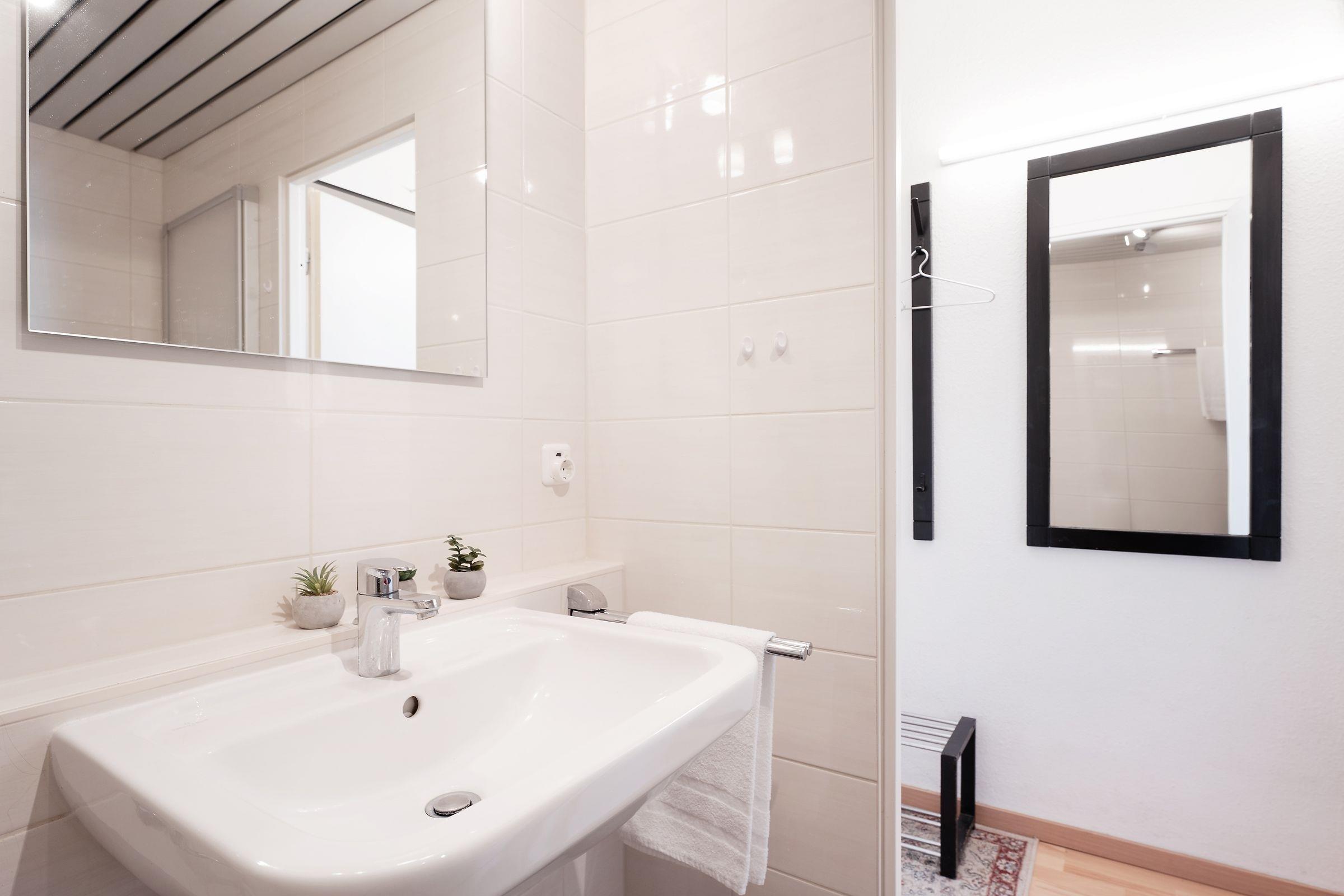 Ein PKW-Tiefgaragenstellplatz ist für Sie reserviert (max. 185 cm Durchfahrtshöhe). Die Nutzung des Hallenbades, der drei Gemeinschafts-Dachterrassen mit Meer- und Landblick sowie des Tischtennisraumes sind für Sie selbstverständlich kostenlos. Ihre mitgebrachten Fahrräder können Sie in einem der 2 Kellerräume in Haus A oder in dem Fahrradraum im Erdgeschoss zwischen Haus A und B abstellen. In Haus D befindet sich auf den Etagen 1 - 4 je ein Gemeinschaftswaschraum mit Waschmaschine und Trockner (gegen Gebühr/Münzgeräte).