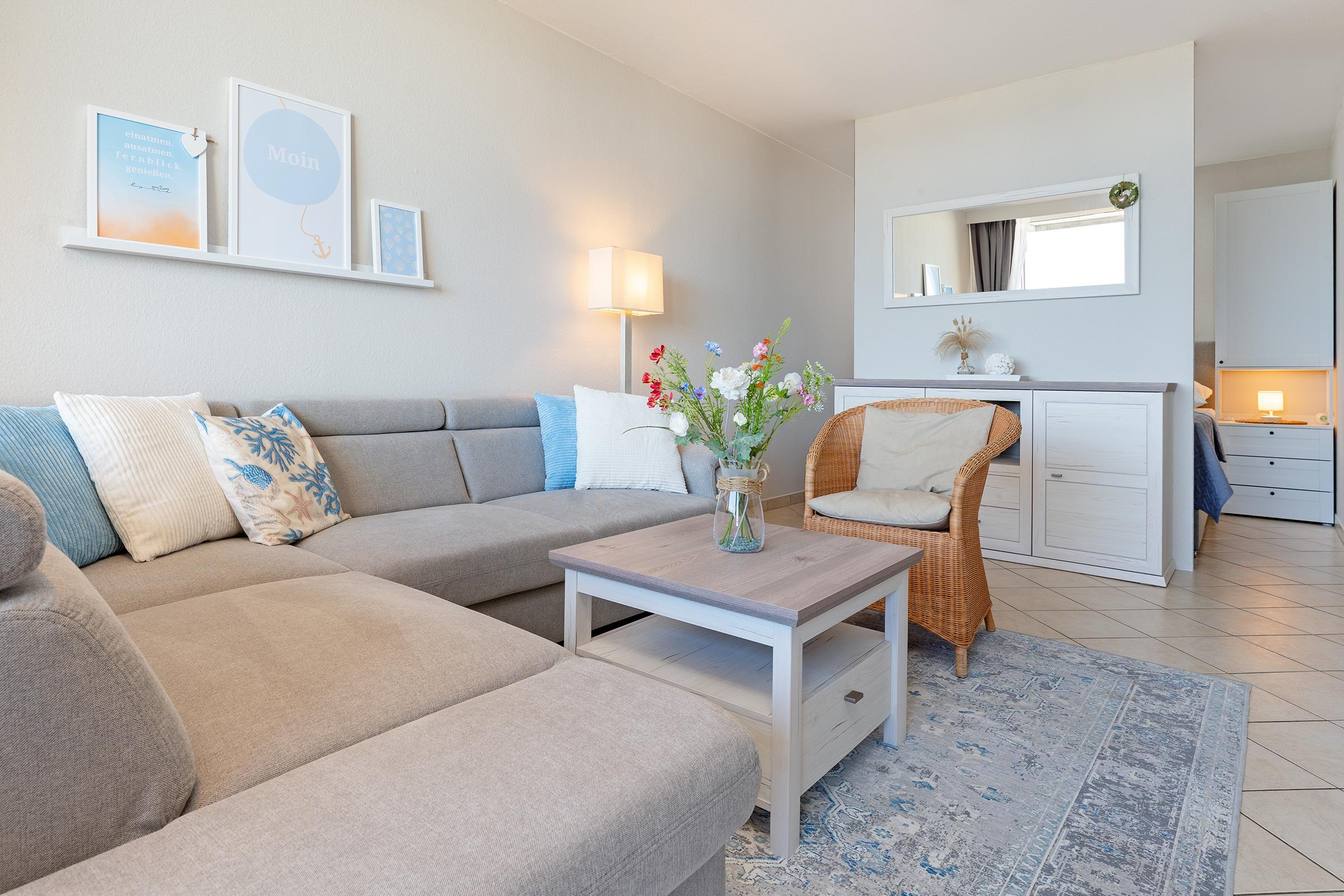Gut ausgestattete Wohnung. Durch die Wand vorm Bett fühlten wir uns etwas beengt (erdrückt) das war aber nur unser persönliches Empfinden . Toller ostseeblick