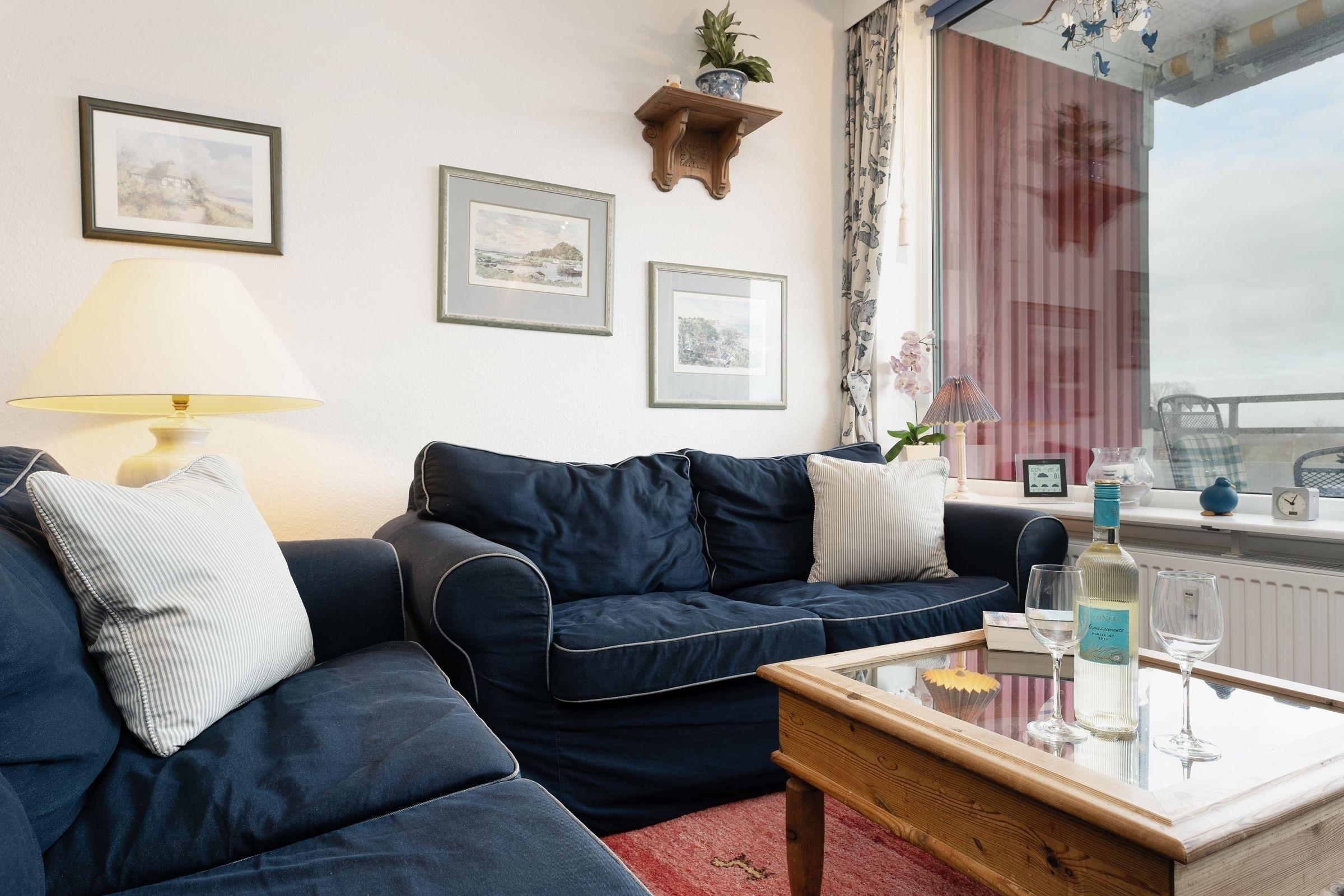 Der kombinierte Wohn- und Schlafbereich ist mit einem komfortablen Doppelbett (2x 100x200 cm), zwei Sofas und einem Kleiderschrank ausgestattet. Für Unterhaltung im Urlaub sorgen der Fernseher, der DVD-Player und die Spielekonsole PlayStation 2. Ein weiterer Fernseher erwartet Sie im separaten Schlafzimmer mit ausziehbarer Couch (180x200 cm). Die geschlossene, gut ausgestattete Küche mit Esstisch orientiert sich am schönen Landhaus-Stil. Das innenliegende Badezimmer verfügt über eine Badewanne. Vom Wohnbereich aus gelangen Sie auf den überdachten, möblierten Balkon wo Sie herrliche Sonnenuntergänge und den seitlich eingeschränkten Teilmeerblick genießen können.