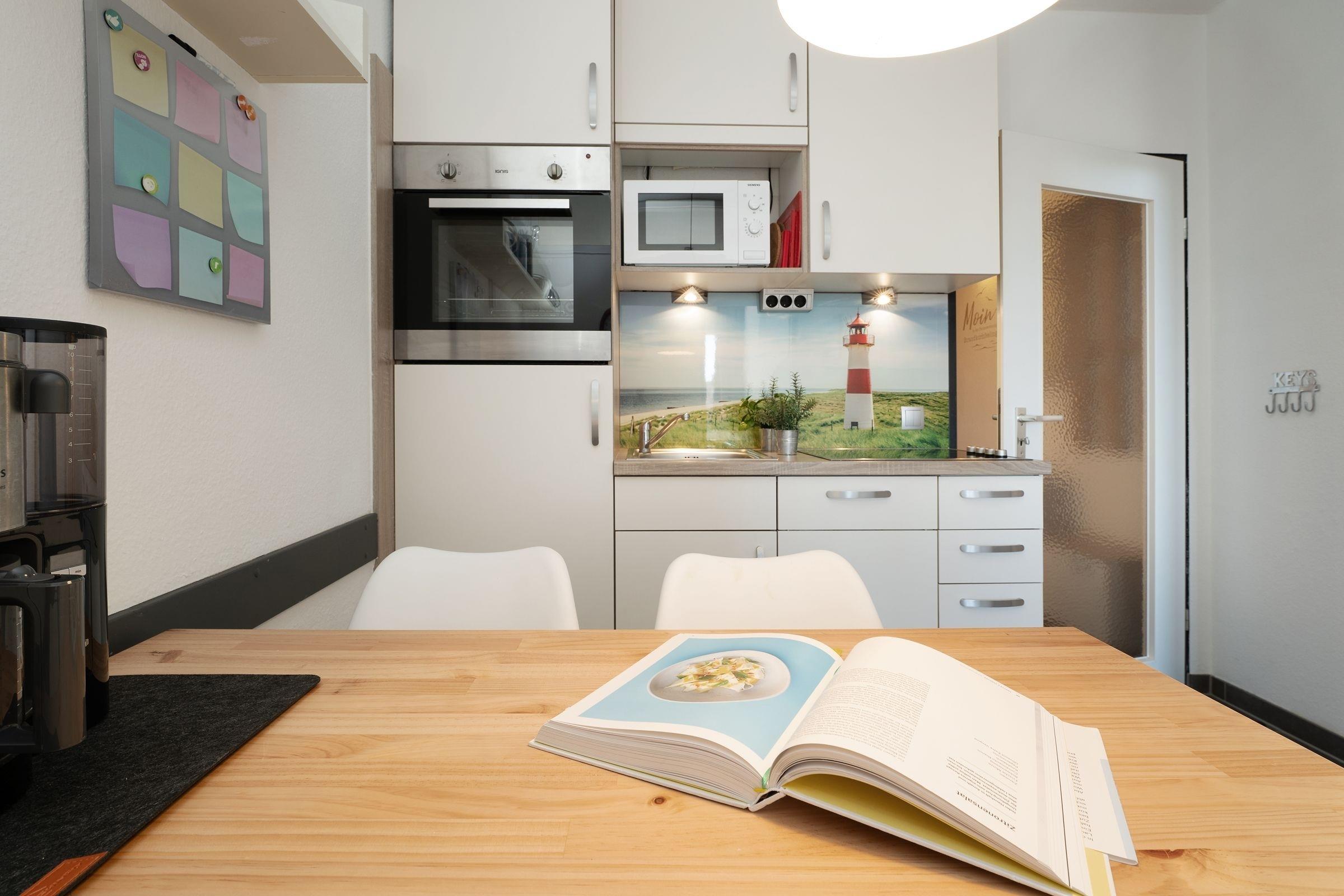 Das Herzstück der Wohnung bildet der kombinierte Wohn- und Schlafraum mit einem Bett (180x200 cm) und einer großen Sofalandschaft sowie dem direkten Balkonzugang. Der möblierte Balkon mit Strandkorb ist nach Süden ausgerichtet und garantiert Ihnen viele schöne Sonnenstunden. Für Unterhaltung im Urlaub sorgen ein Fernseher mit DVD-Player und ein Blu-ray-Player. Das separate Schlafzimmer ist mit zwei Einzelbetten (je 80x200 cm) und einem zweitem Fernseher möbliert. Die separate Küche ist mit Annehmlichkeiten wie z. B. einem Backofen in praktischer Arbeitshöhe, einer Spülmaschine, einem Kühlschrank sowie einer gemütlichen Essecke gut ausgestattet. Durch den Flur gelangen Sie in das komfortable, innenliegende Badezimmer mit bodengleicher Dusche und Handtuchwärmer. Von der Wohnung aus sind es nur wenige hundert Meter bis zum idyllischen Ostseedeich, Promenade und feinsandigem Strand. Auch bis zur Ortsmitte mit diversen Einkaufsmöglichkeiten, Bäckerfilialen, Cafés und Restaurants ist es nicht weit.