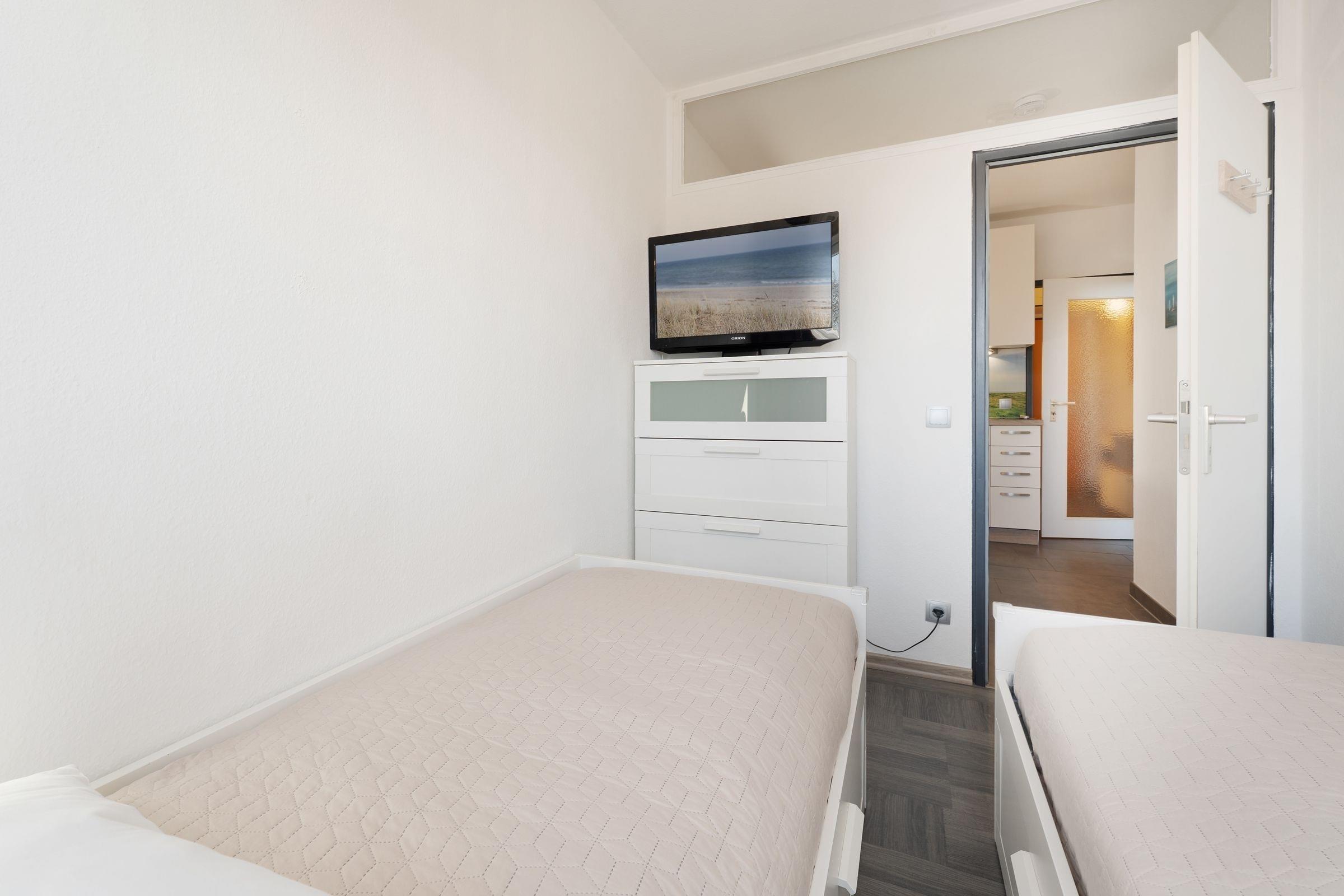 Schlafzimmer: 2 Einzelbetten (je 80x200 cm), TV, Kommode, Verdunkelungsmöglichkeit