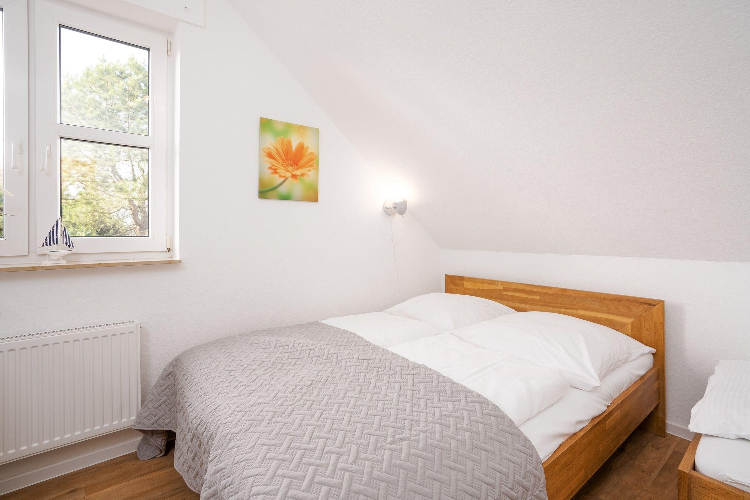 Schlafzimmer 2: 1 Einzelbett (90x200 cm), 1 kleines Doppelbett (140x200 cm), TV, Verdunkelung (Außenrollo)