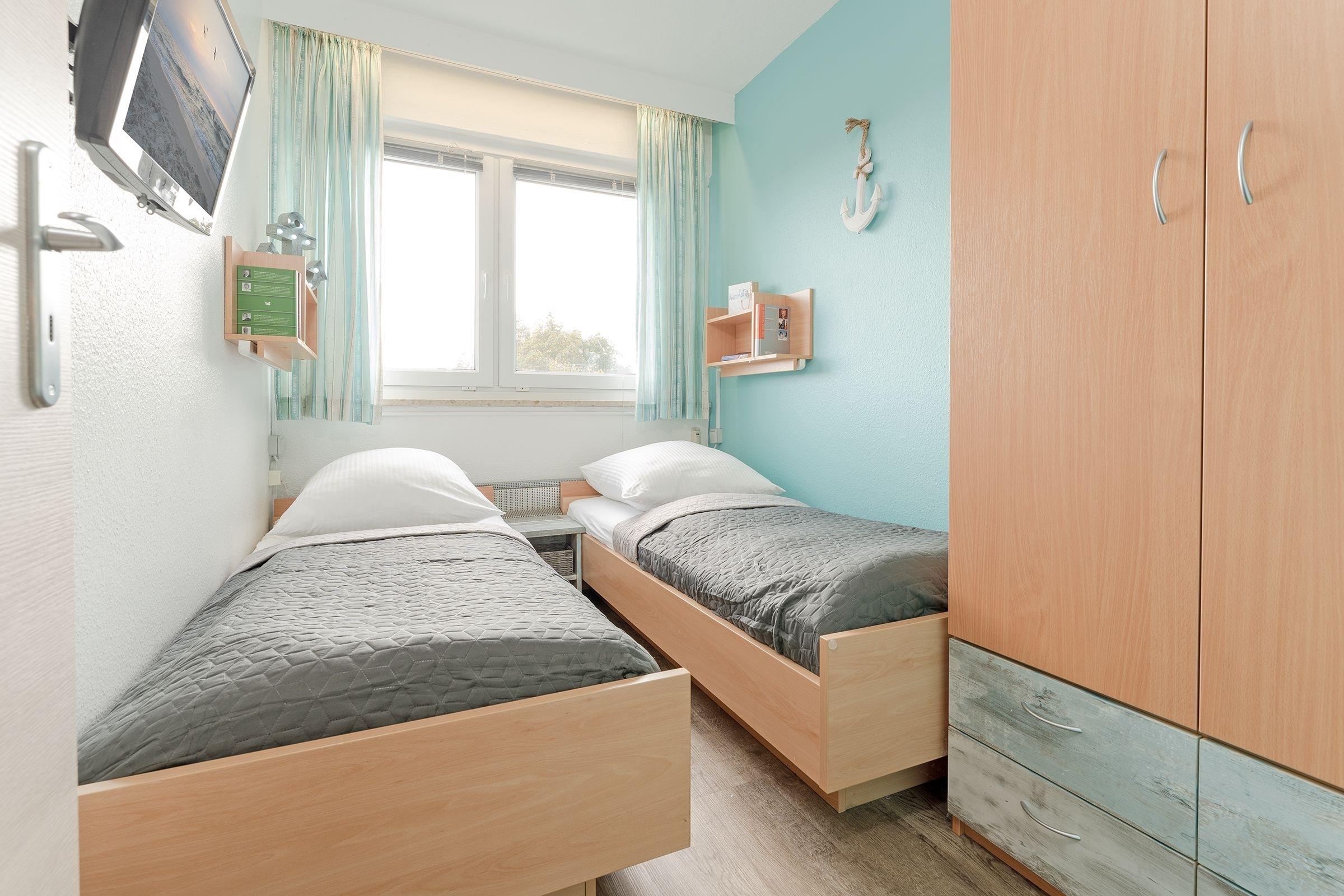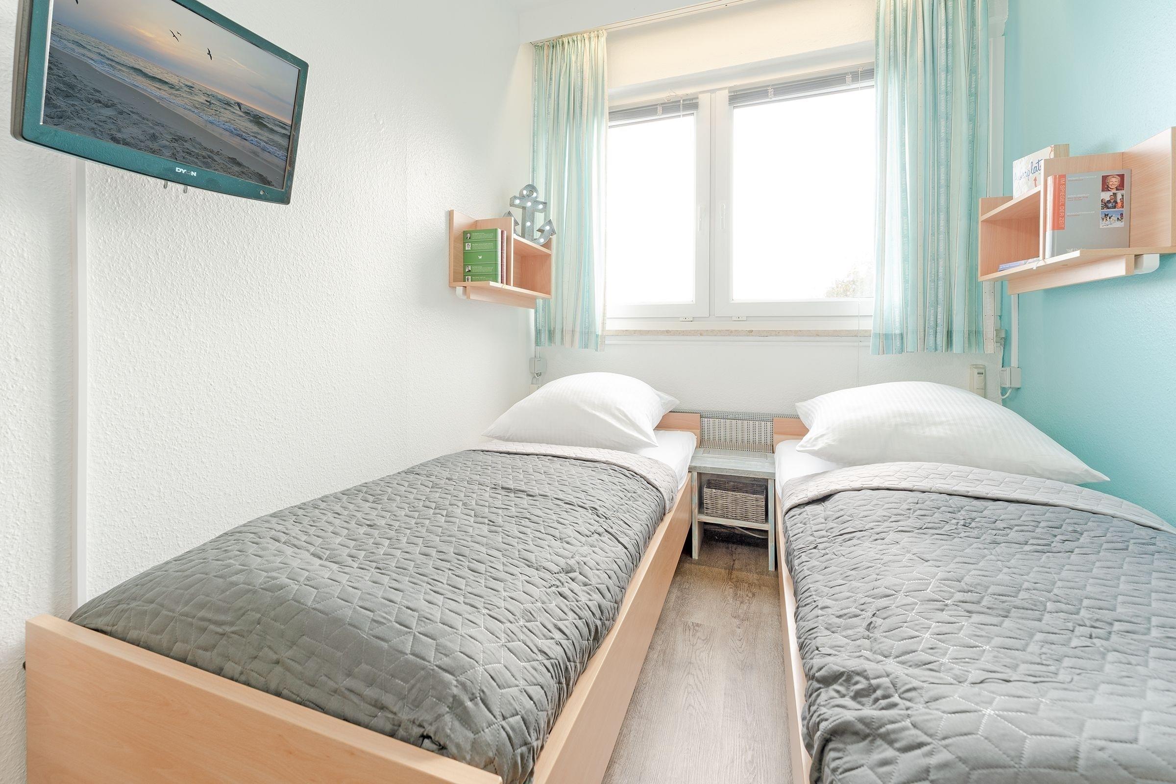 Schlafzimmer: 2 Einzelbetten (2x 80x200 cm), TV, Kleiderschrank