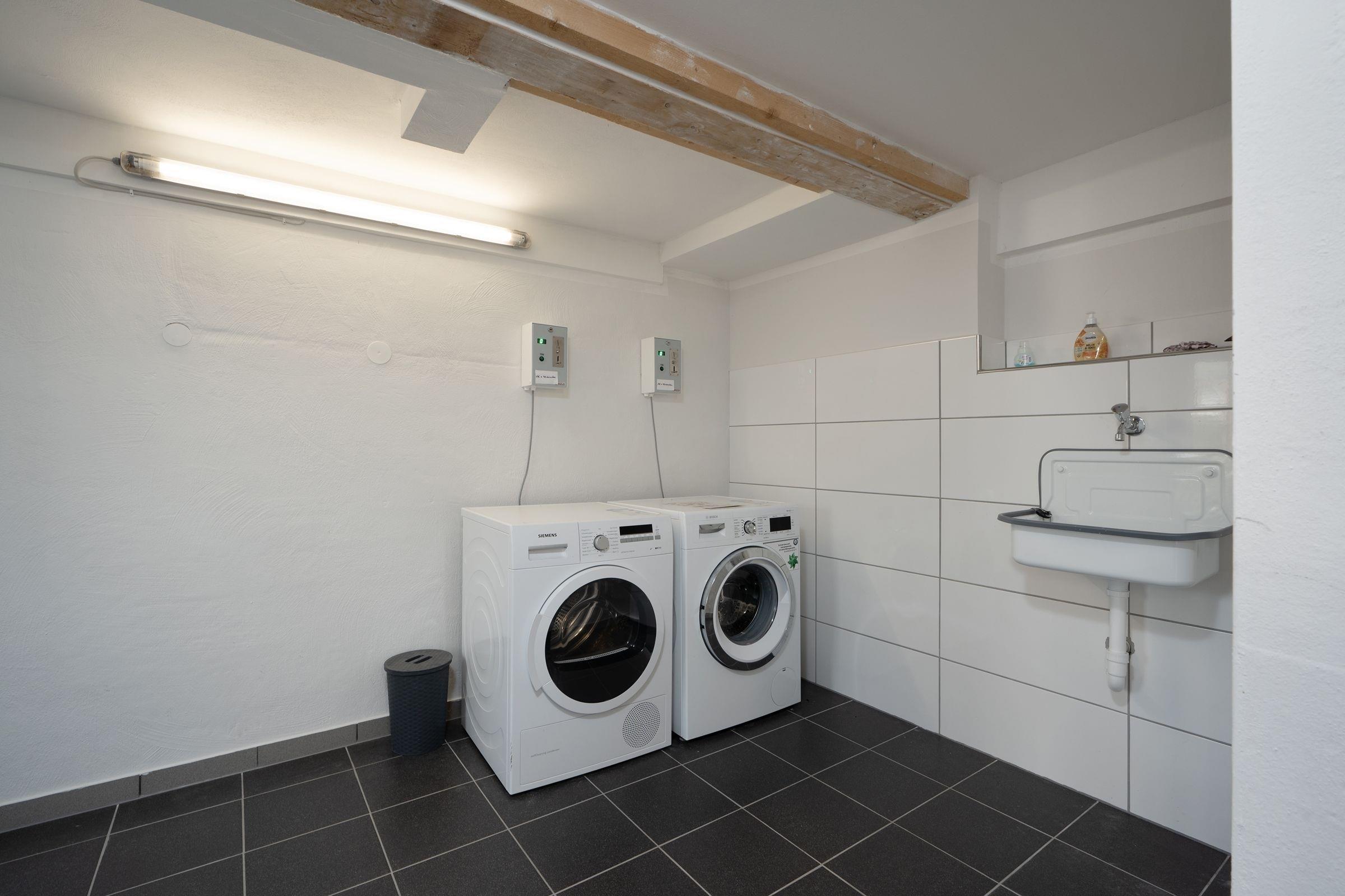 Ein PKW-Außenstellplatz am Haus ist für Sie reserviert. Ihre Fahrräder können Sie sicher im abschließbaren Fahrradabstellraum parken. Den Gäste der Alten Da(h)me stehen gemeinschaftliche genutzte Münzwaschmaschinen und -trockner zur Verfügung.