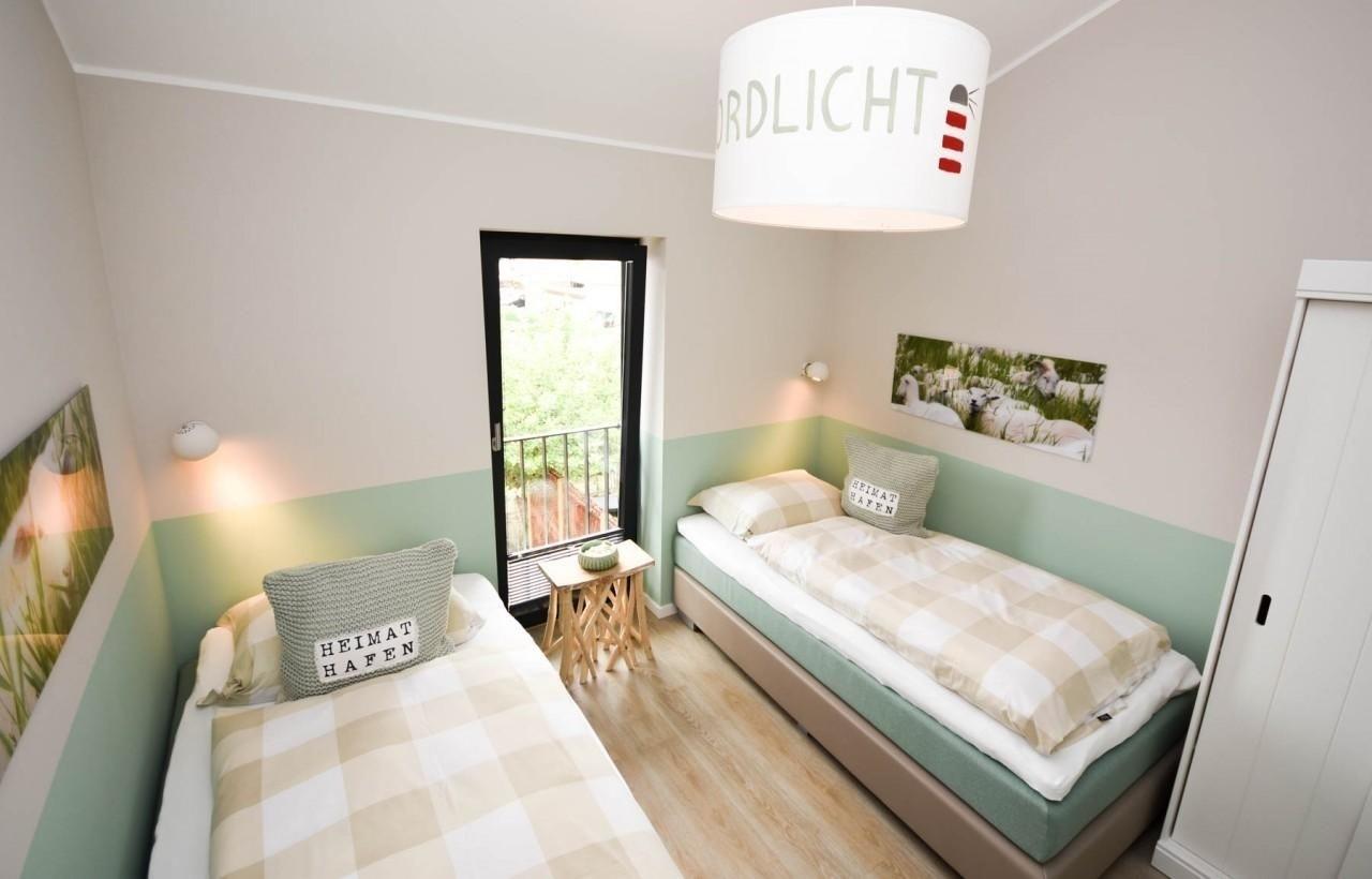 Schlafzimmer 3: 2 Einzelbetten (2x 90x200 cm), TV, Kleiderschrank, Verdunklung (Plissees)