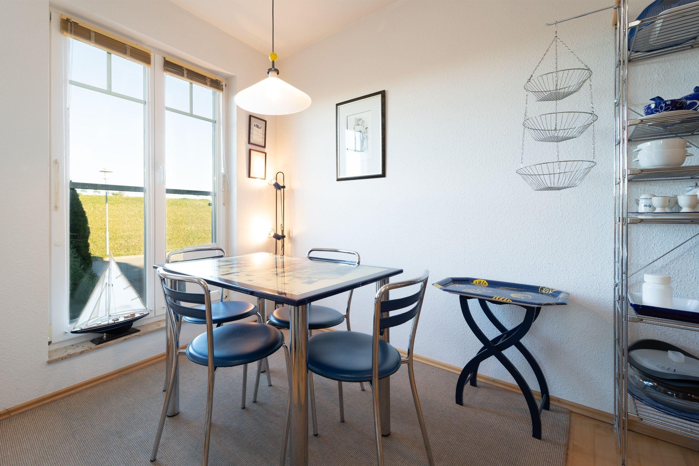 Die Ferienwohnung verfügt über ein gemütliches Wohnzimmer mit TV und integrierter Küche mit Essbereich - vom Tischstaubsauger, über die Kaffeepad Maschine bis zum elektrischen Tischgrill finden sich hier zahlreiche tolle Extras in der Küchenausstattung.