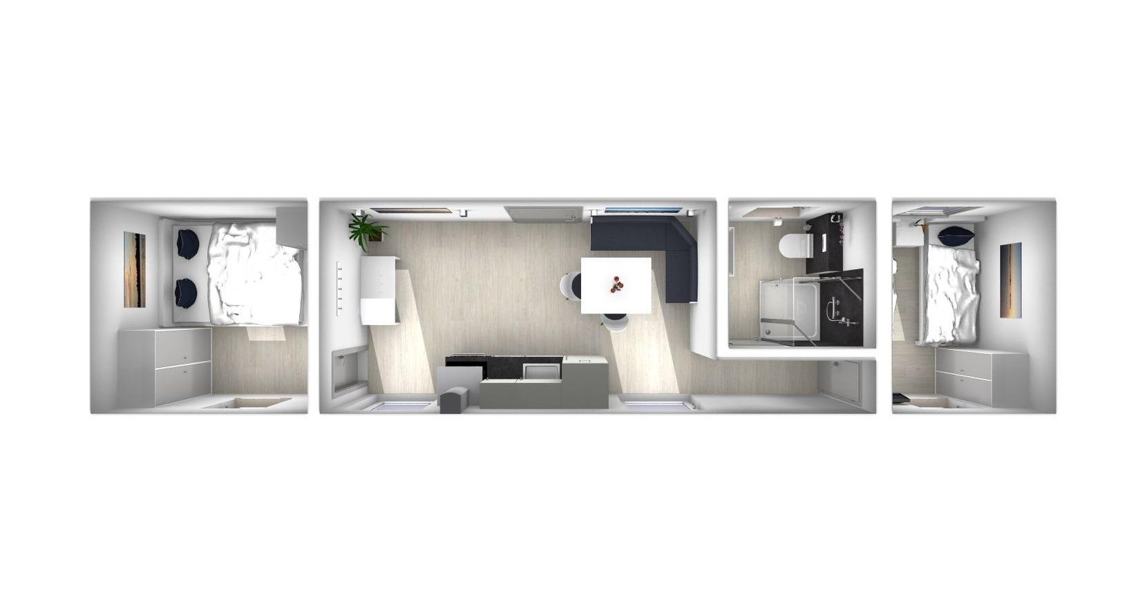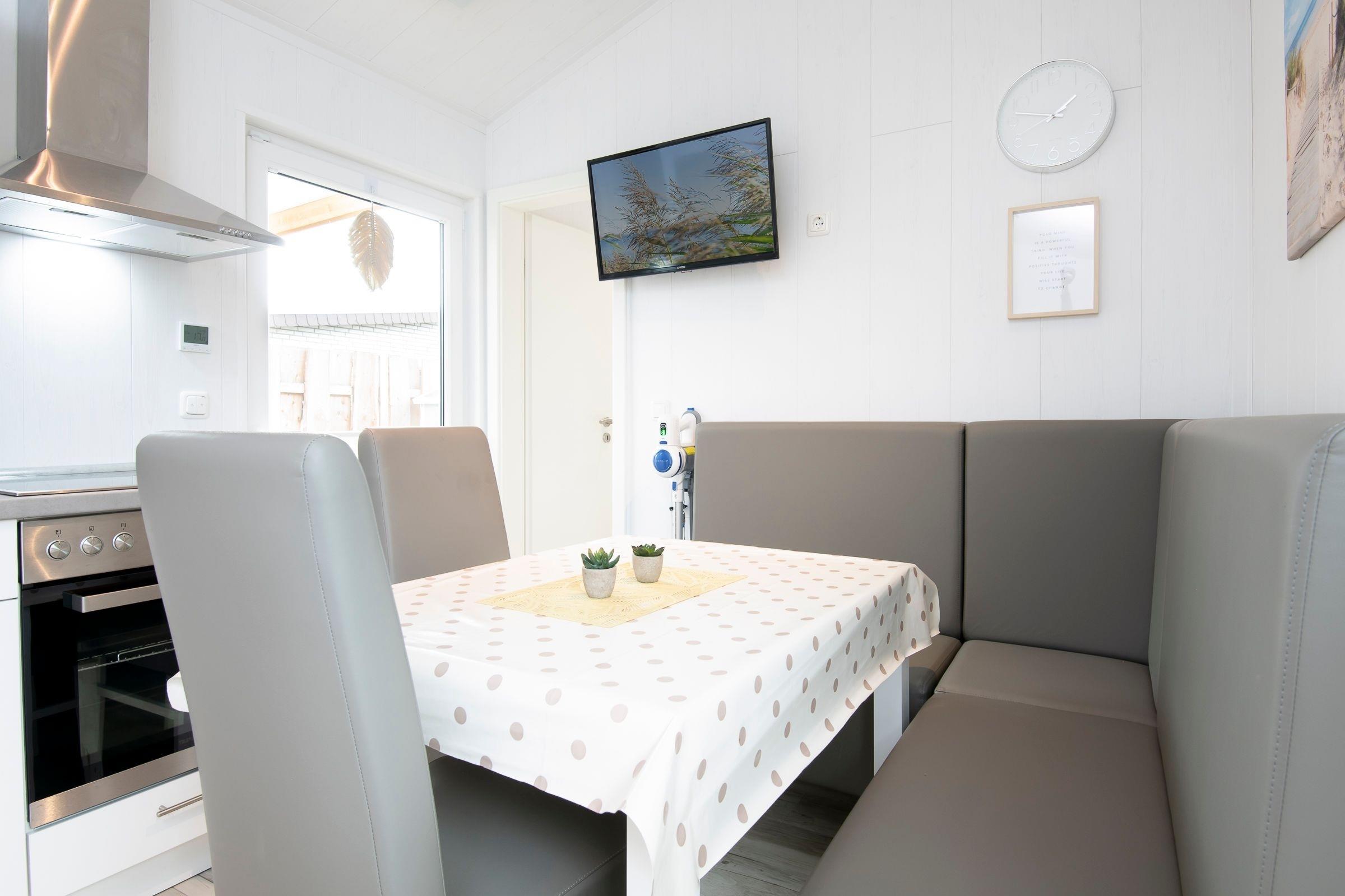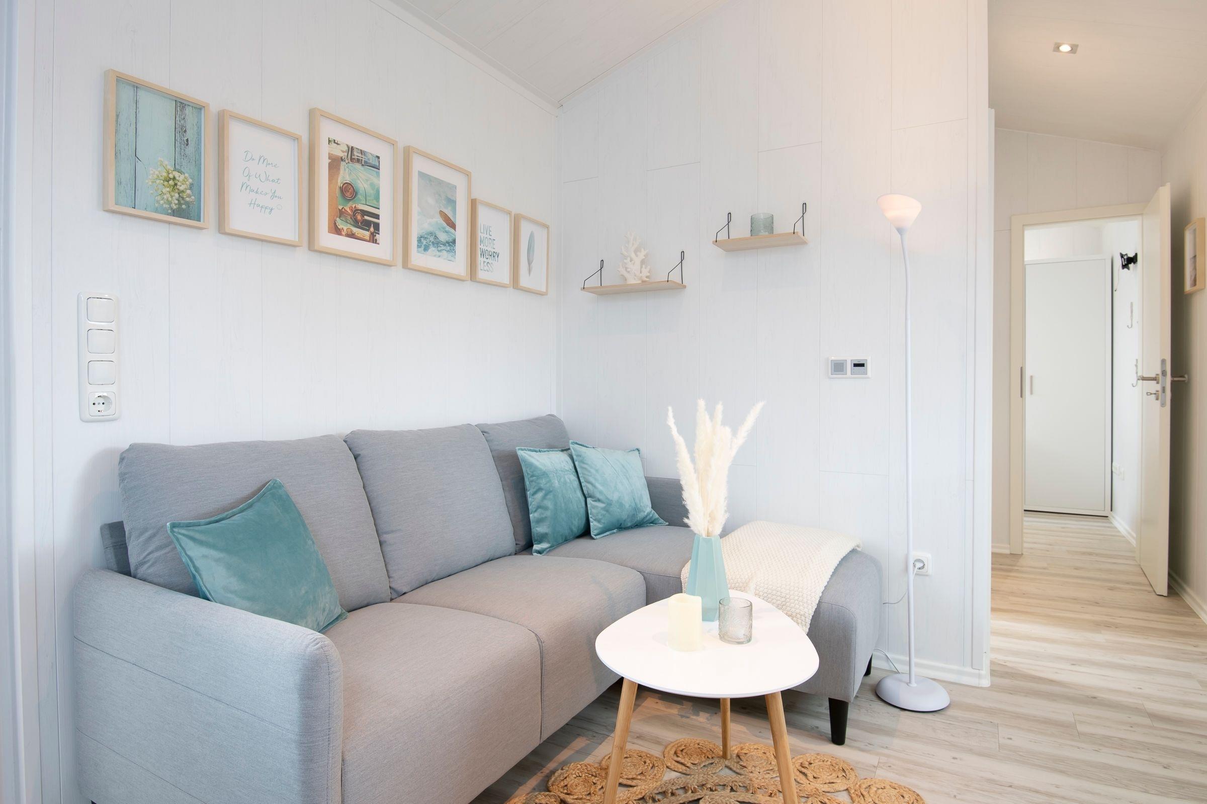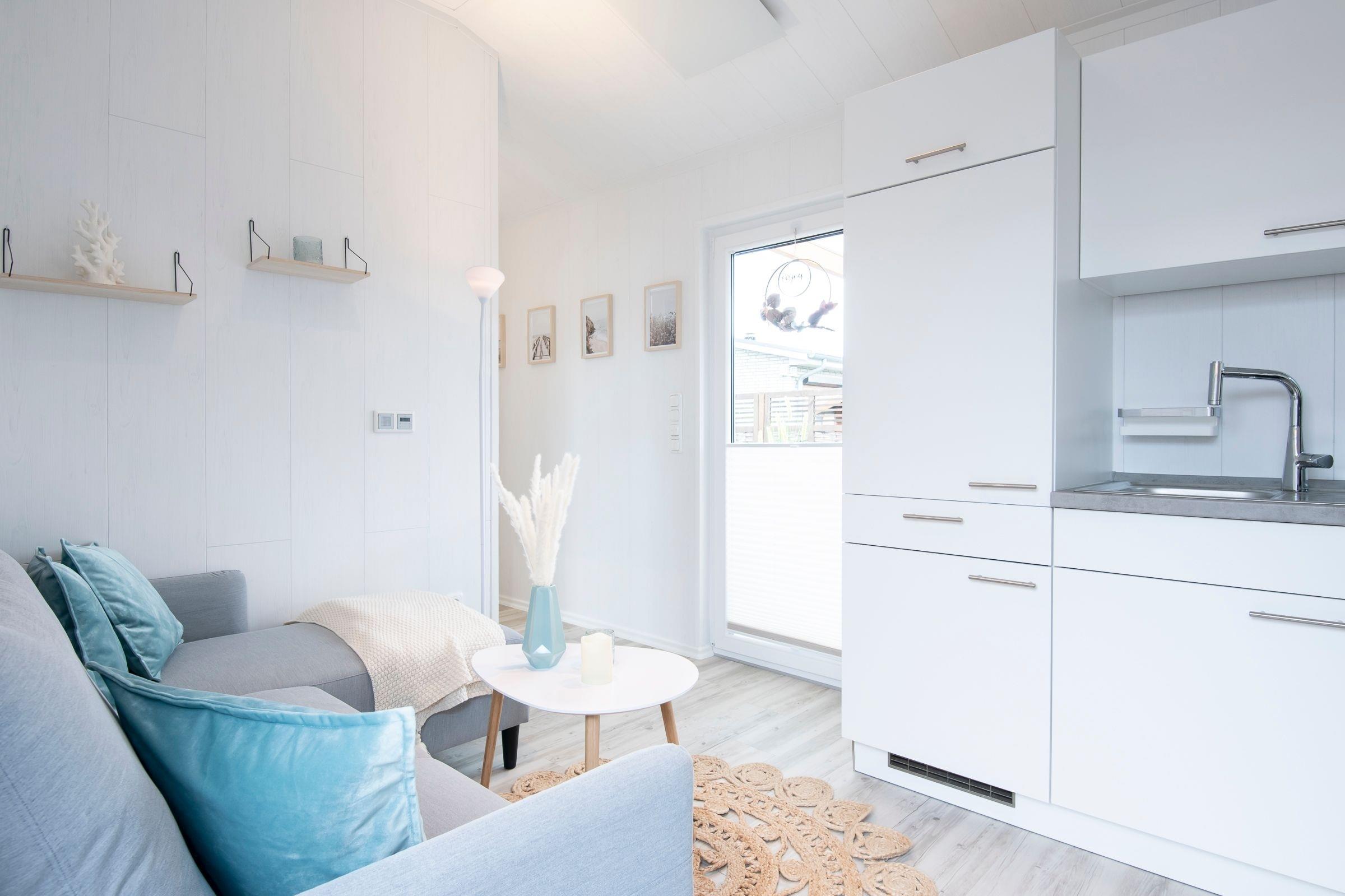 Das gemütliche Modulhaus "Strandmuschel" bietet auf einer Wohnfläche von ca. 37 m² ausreichend Platz und Komfort für bis zu 4 Personen.