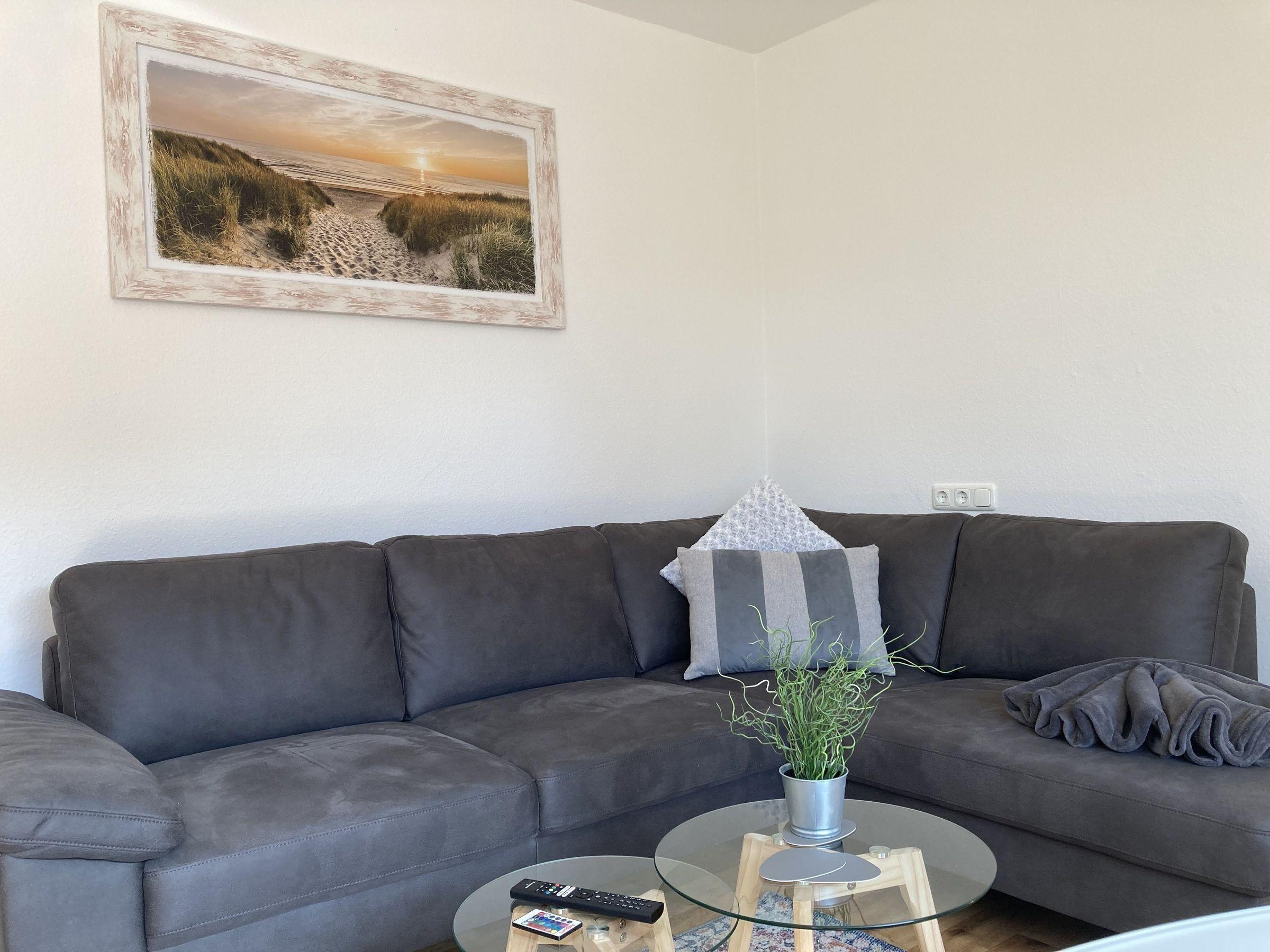 Die Ferienwohnung "Seebär" im Haus Meeresglück bietet auf 45 m² Wohnfläche Platz für bis zu 2 Personen und ist modern und hell eingerichtet. Der Eingangsbereich verfügt über eine Garderobe, während das Wohnzimmer mit einer gemütlichen Sofaecke, TV und einem integrierten Essplatz überzeugt. Die voll ausgestattete Küche enthält einen Geschirrspüler und einen Backofen. Das Schlafzimmer ist mit einem hochwertigen Polsterbett und einem Kleiderschrank eingerichtet. Das tageslichthelle Badezimmer bietet eine ebenerdige Dusche und WC. Im Keller des Hauses befinden sich eine Waschmaschine und ein Trockner zur gemeinschaftlichen Nutzung. Ein PKW-Stellplatz ist direkt am Haus verfügbar. Fahrräder können in einem Kellerraum oder offen auf dem Grundstück abgestellt werden. Haustiere sind willkommen.