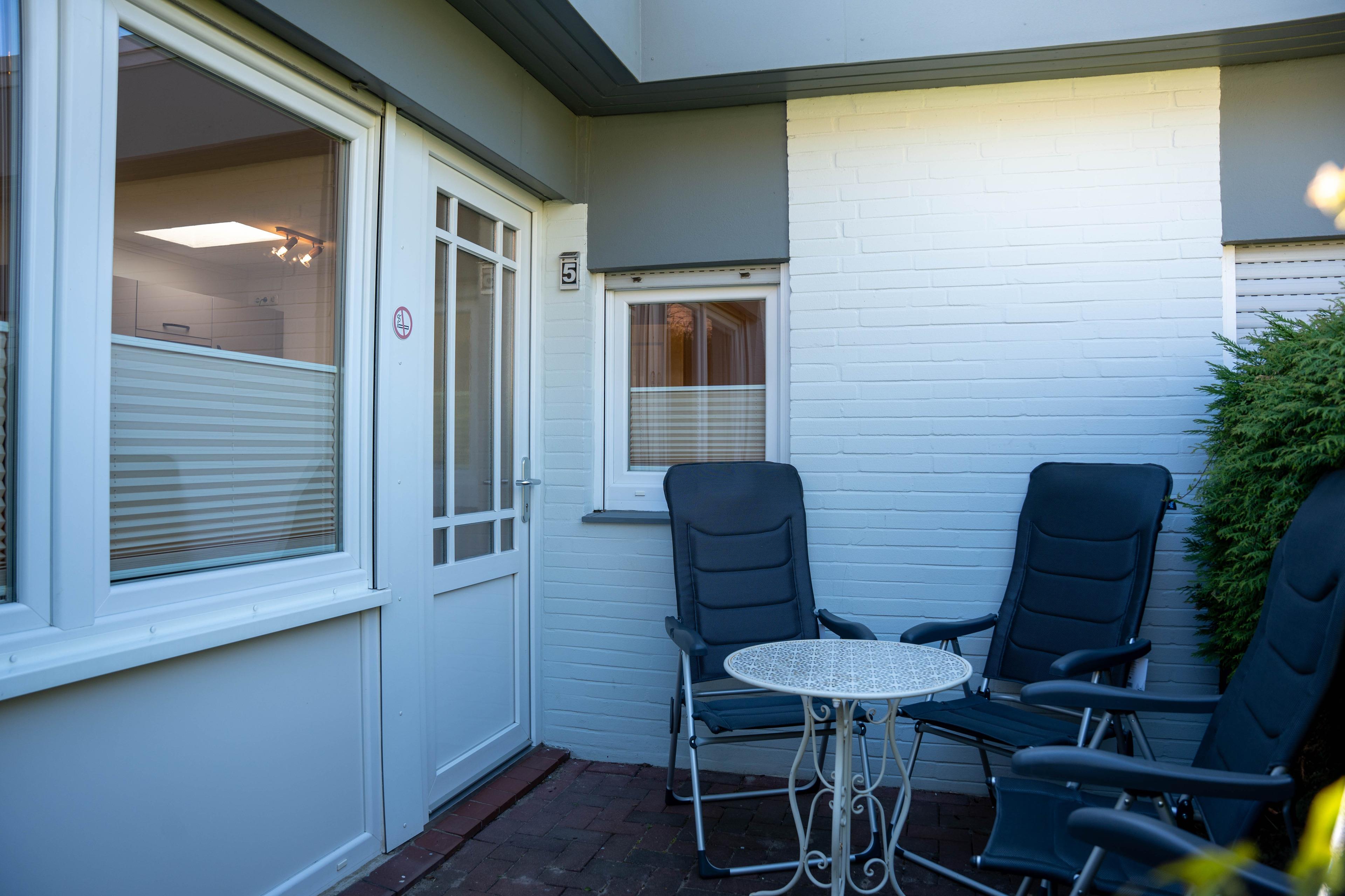 Der Bungalow verfügt über ein Schlafzimmer mit einem Doppelbett (180 x 190 cm) sowie einen separaten Schlafraum mit einem Etagenbett (90 x 190 cm). Die offene Küchenzeile ist mit einem Geschirrspüler ausgestattet. Im Wohnbereich können Sie auf der Couch entspannen. .Die Einrichtung ist funktional, und es gibt eine Sitzecke für bis zu vier Personen, perfekt für gemeinsame Mahlzeiten oder entspannte Abende. Im Außenbereich gibt es eine kleine Terrasse, wo sie entspannen können.