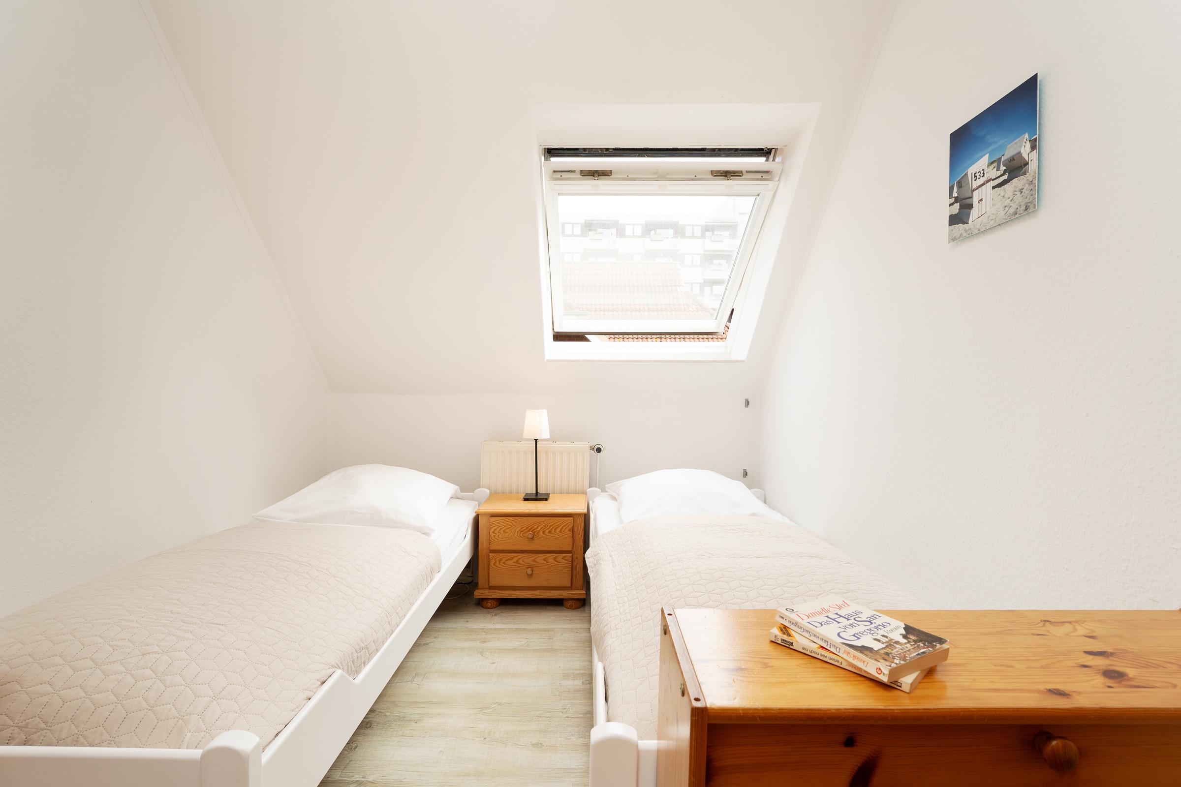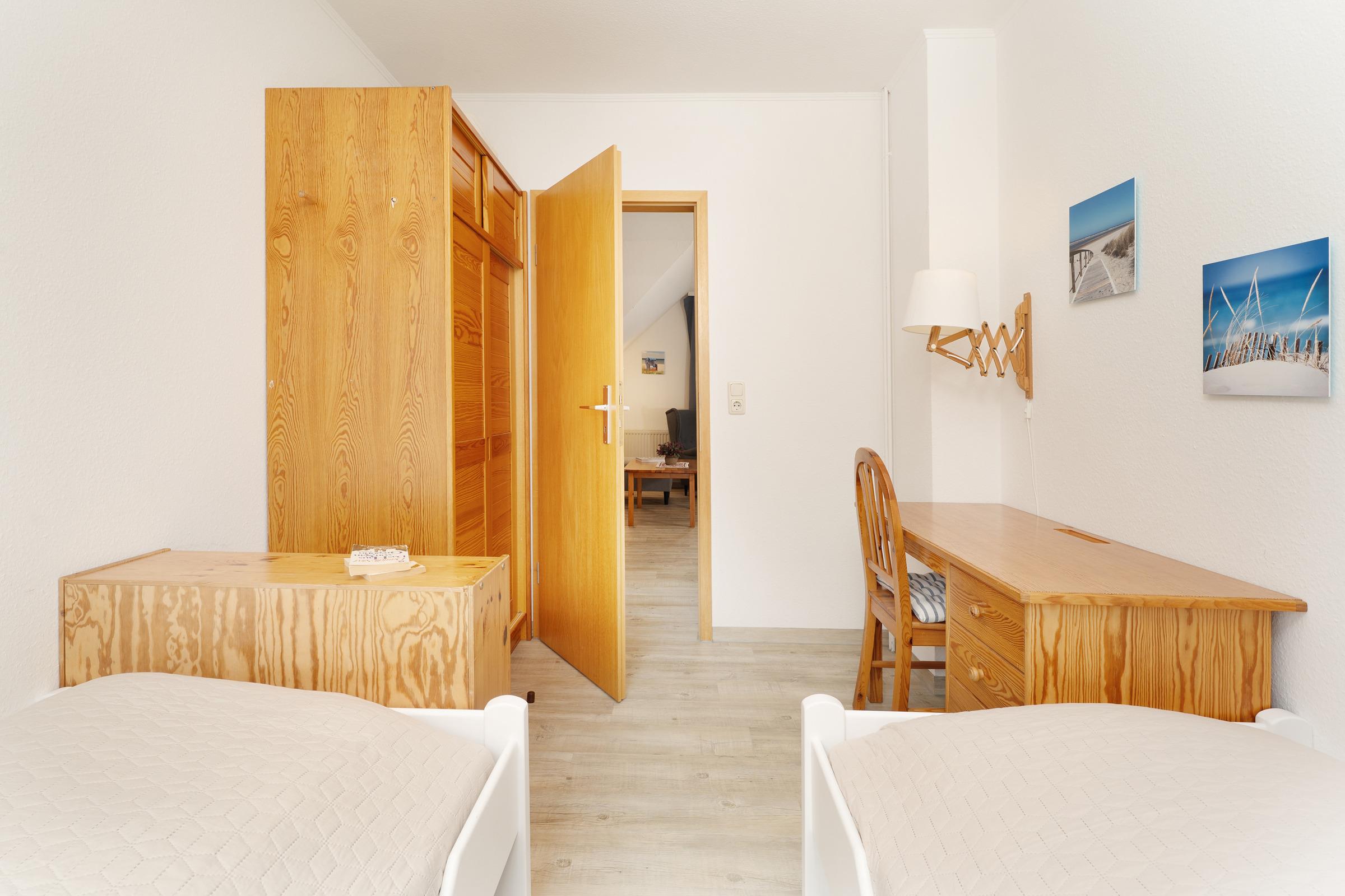 Schlafzimmer 2: 2 Einzelbetten (je 90x200 cm), Verdunkelung: Rollo, kein Platz für ein Babybett vorhanden