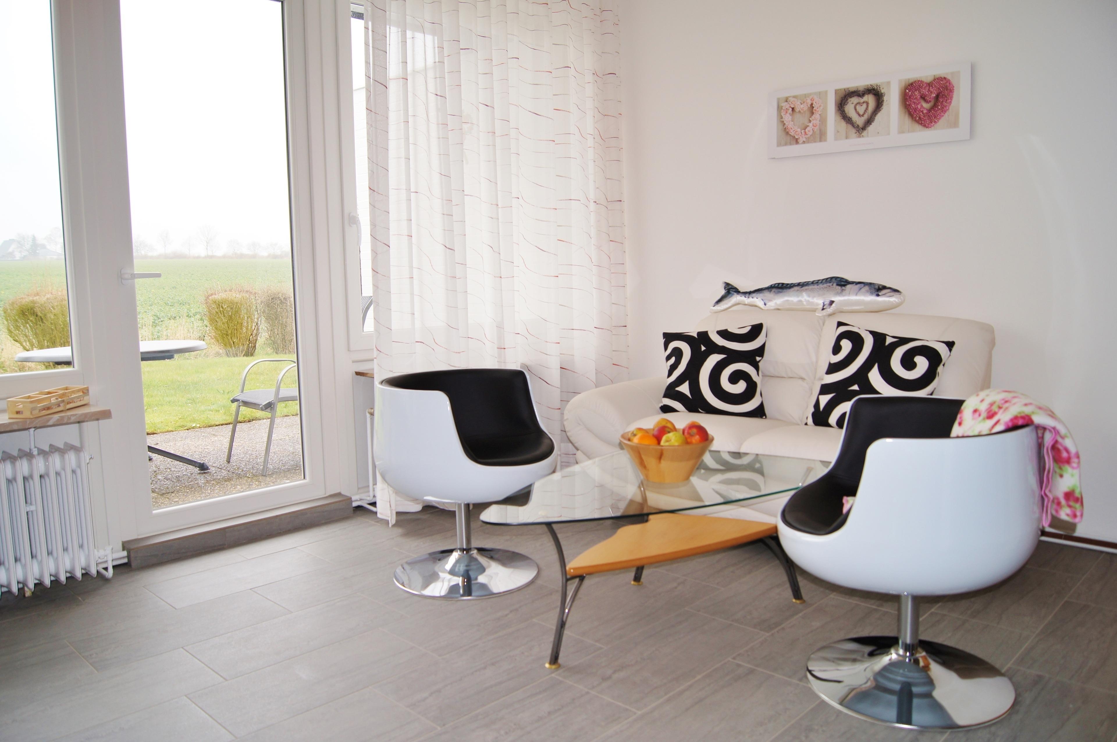 Die Wohnung besteht aus einem Wohn- Essbereich mit Zugang zur gemütlich möblierten Terrasse, Küche mit Herd und Geschirrspüler, Kinderzimmer mit 2 Einzelbetten, Duschbad, separatem WC, und vom Wohnbereich separiertem optisch abgetrenntem Schlafbereich. Aus dem Wohnzimmer und von der Terrassegenießen Sie den Weitblick über Felder. Neben Terassenmöbeln steht auf der Terasse ein Original Dahmer Strandkorb. Zugleich ist die Ortsmitte und der Strand fußläufig in wenigen Minuten erreichbar.