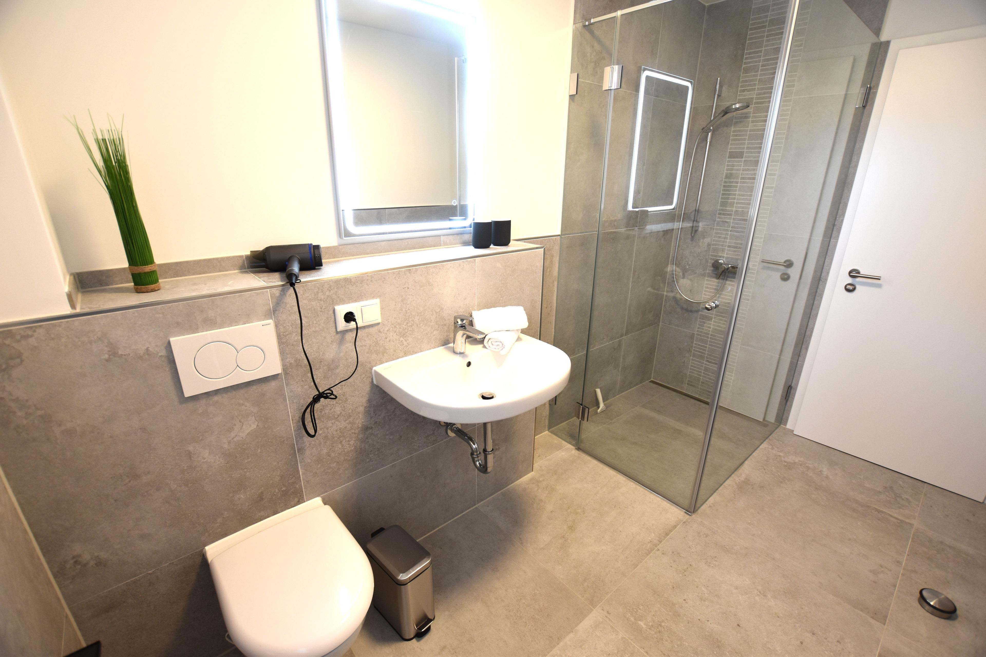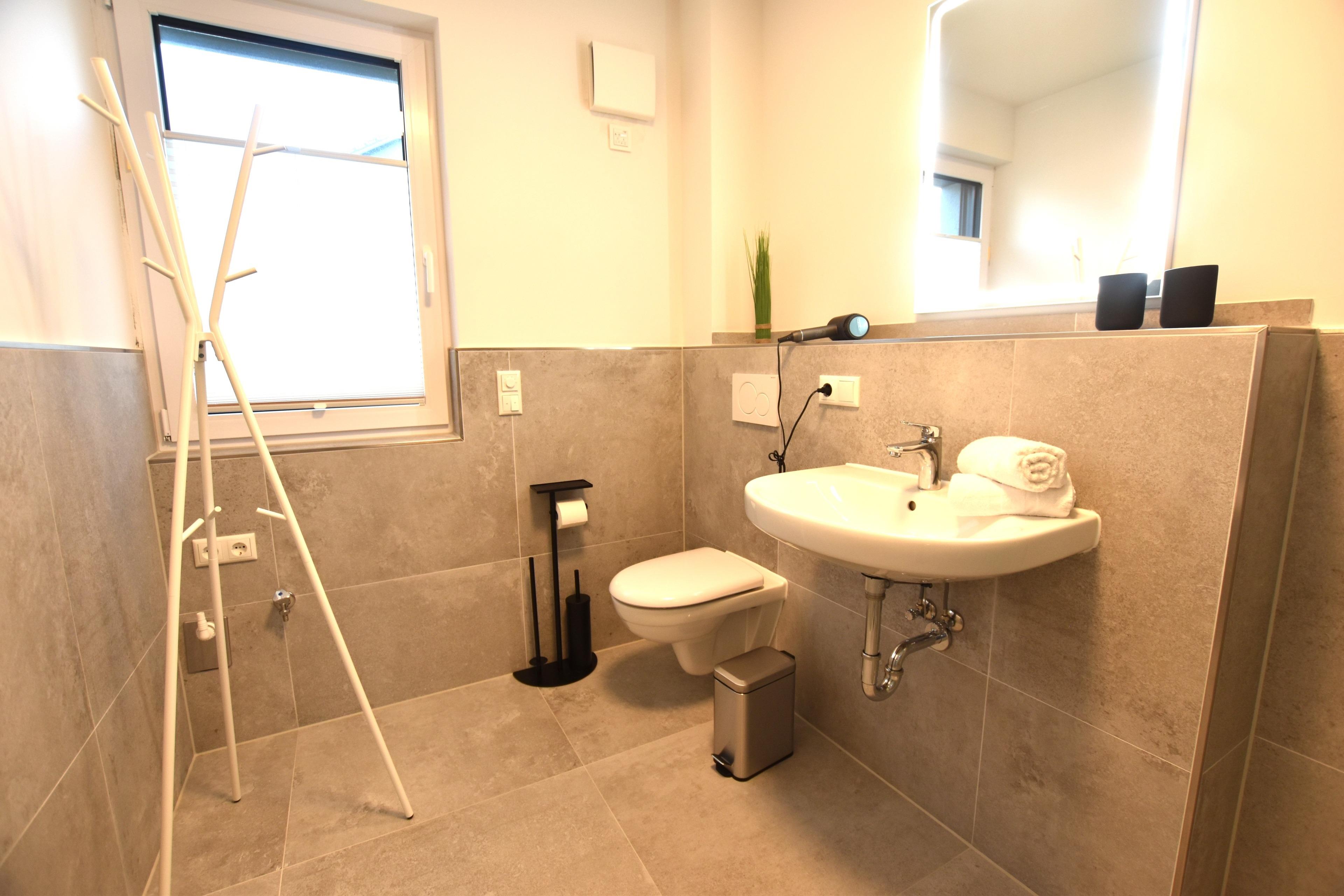 • Duschbad: befindet sich ein Duschbad mit Fenster und Außenrollladen.