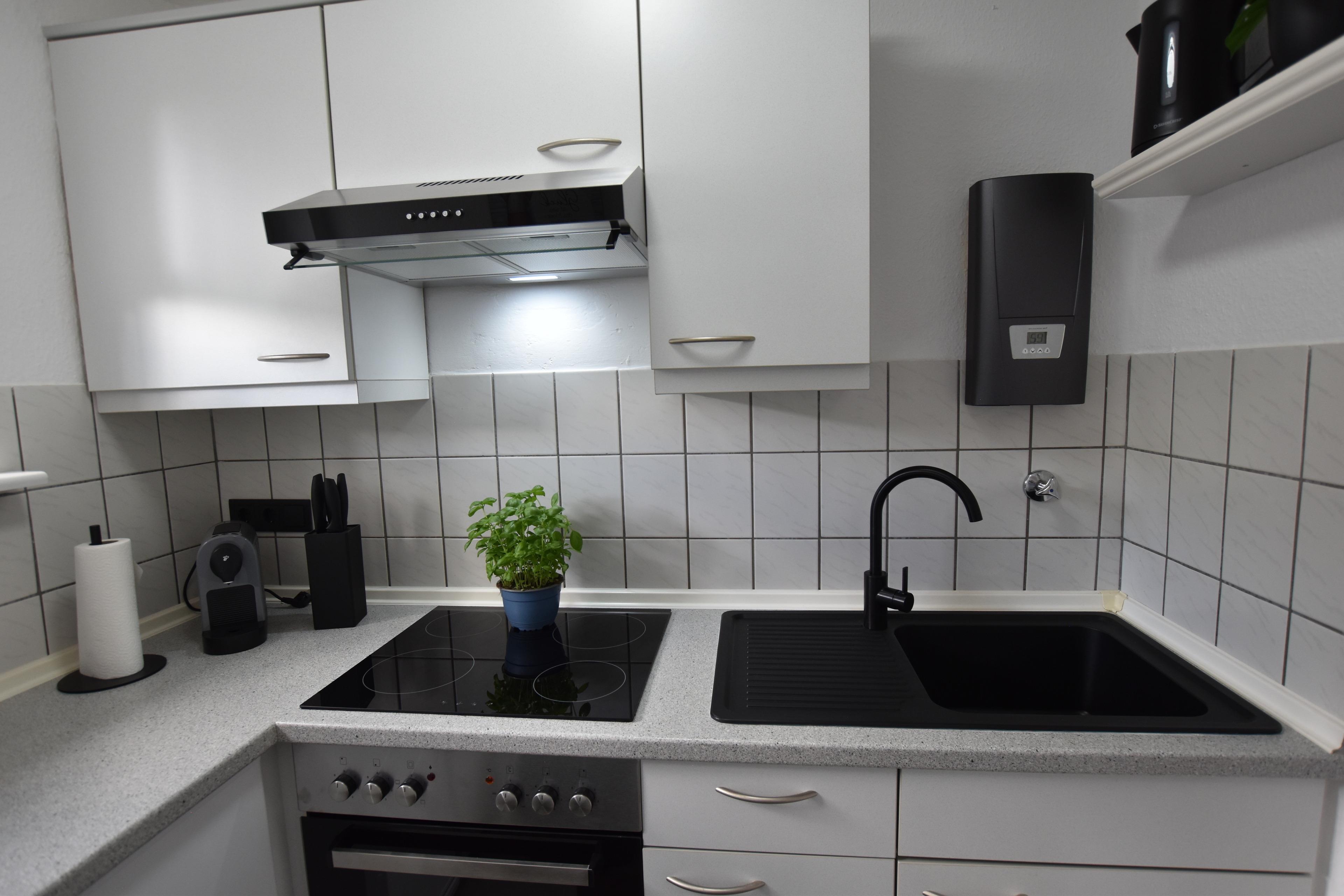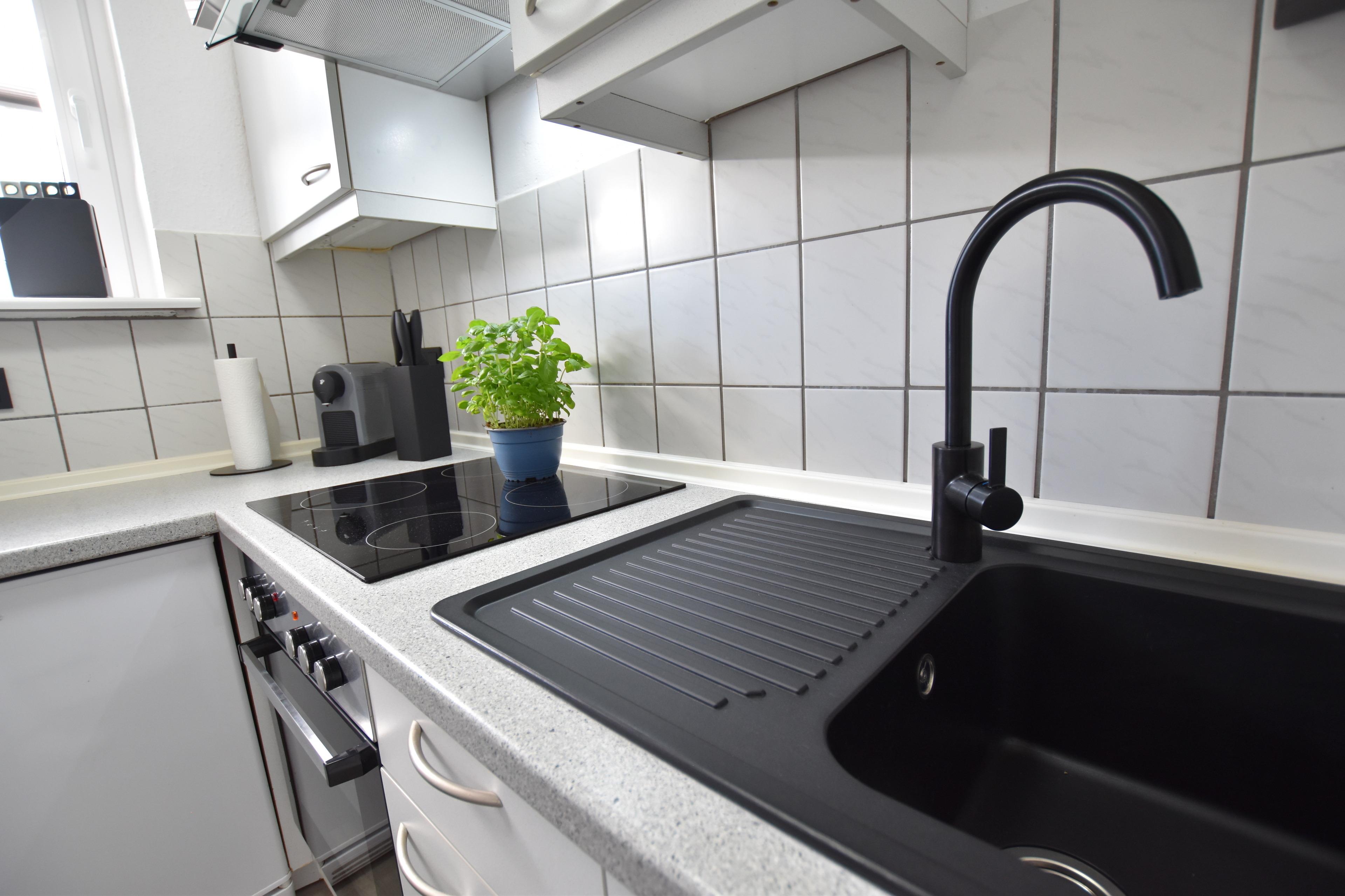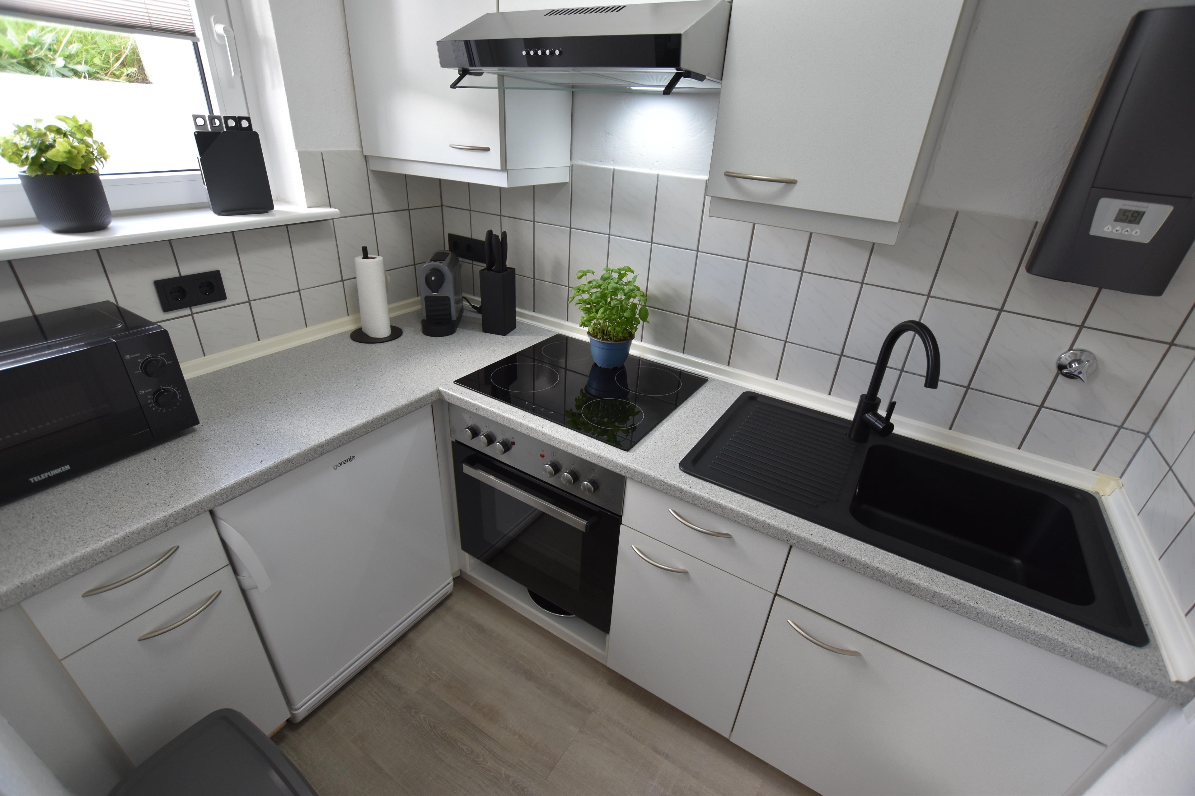 • gut ausgestattete Küche mit Fenster