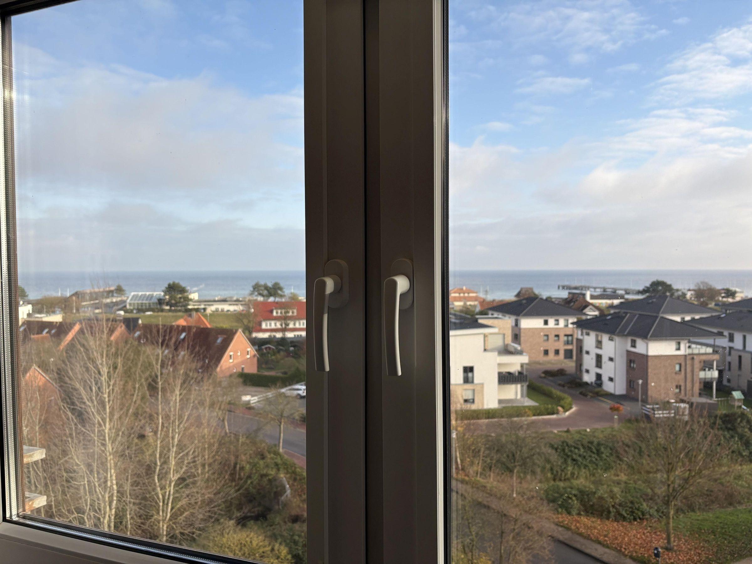 Das Feriendomizil in der 5. Etage des Hauses Berolina bietet Platz für bis zu 4 Personen und beeindruckt durch einen traumhaften Blick über die Ostsee. Es disponiert über ein Wohn- und Schlafzimmer mit einer gemütlichen Eck-Couch, Sessel und TV sowie einem Doppelbett (2 Einzelmatratzen 90x200 cm) und Kleiderschrank. Ein separater Schlafraum mit Schlafsofa (120x180 cm), Klapptisch, Kleiderschrank und TV ergänzt den Raum. Die Küche ist ausgestattet mit einer Spülmaschine und einem Essplatz für 4 Personen. Im Badezimmer sind Dusche und WC vorhanden.