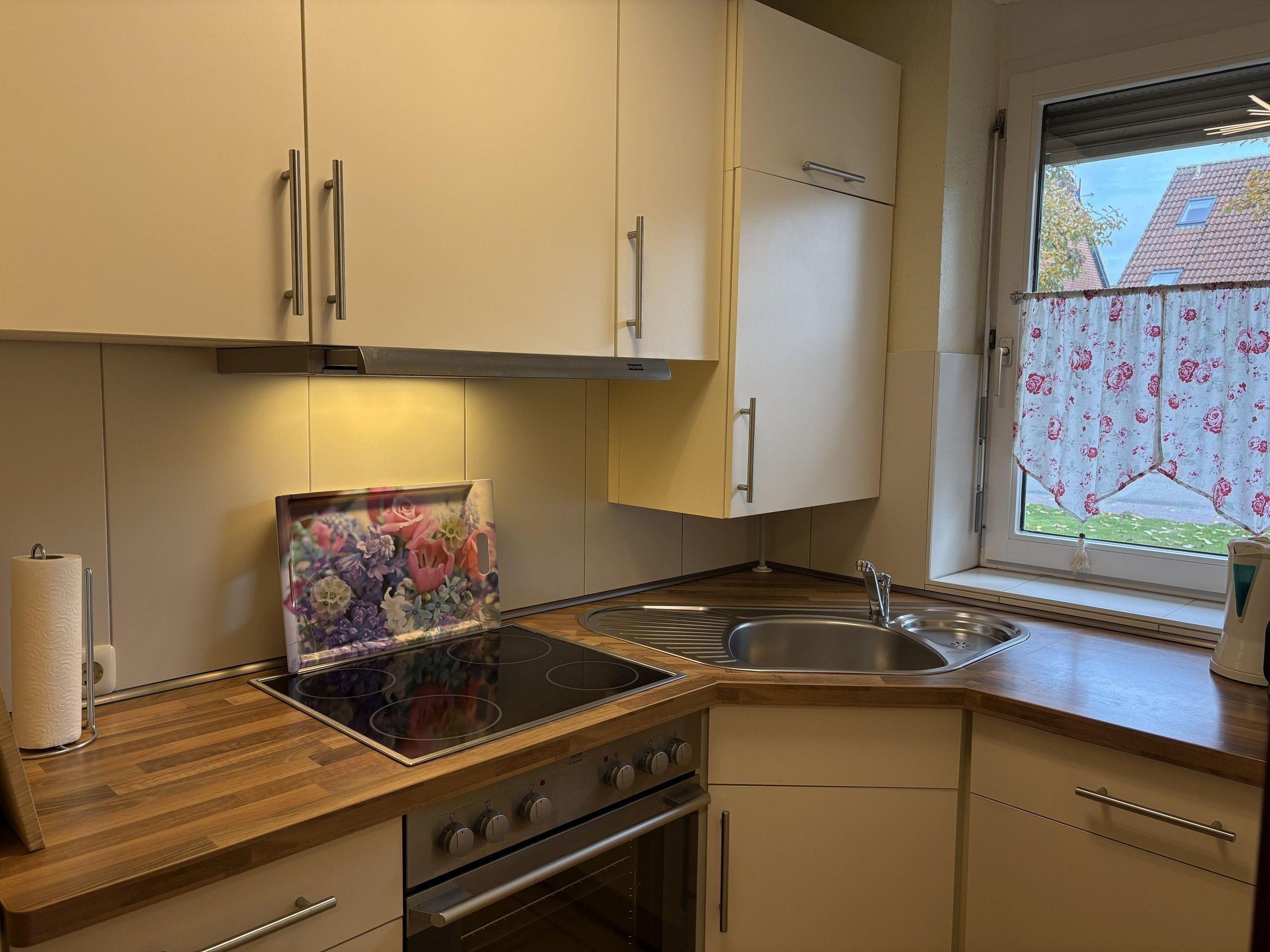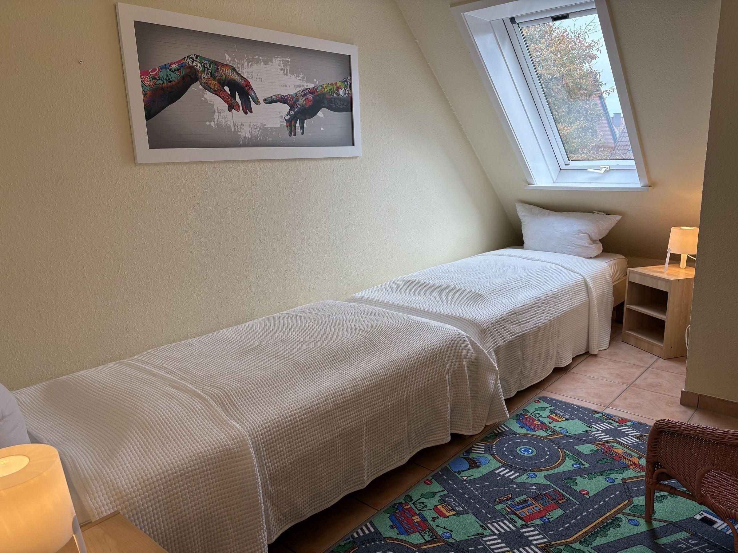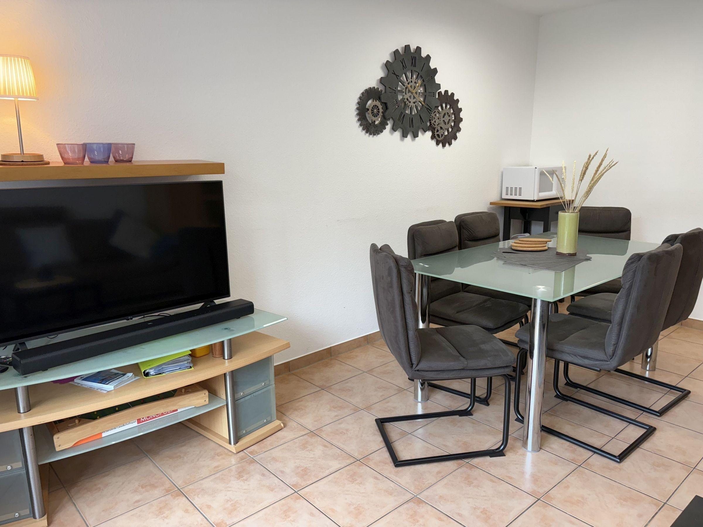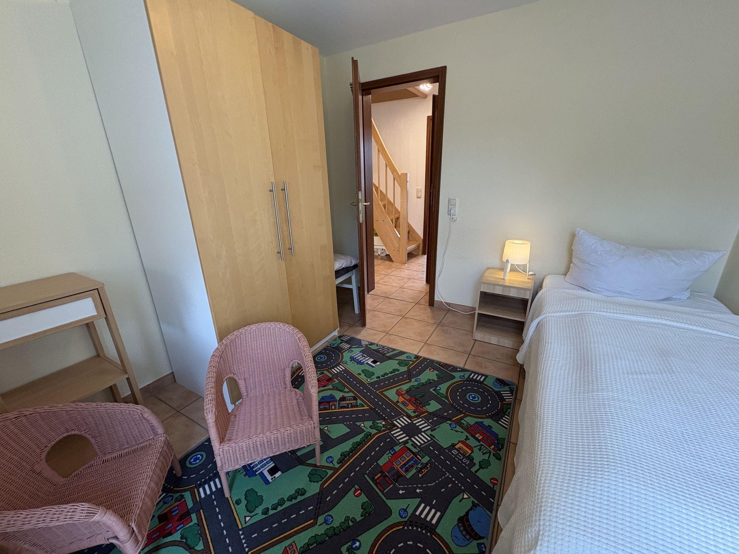 Das Ferienhaus bietet auf 65 m² Wohnfläche über drei Etagen Platz für bis zu 6 Erwachsene und 1 Kleinkind. Im Erdgeschoss befindet sich ein Eingangsbereich mit Garderobe, ein Wohn- und Esszimmer mit gemütlicher Sofaecke und TV, sowie eine voll ausgestattete Küche mit Herd, Backofen und Geschirrspüler. Zudem gibt es ein Badezimmer mit Dusche und WC. Im 1. Obergeschoss sind zwei Schlafzimmer, eines mit Doppelbett und TV, das andere mit zwei Einzelbetten, sowie ein weiteres Badezimmer. Das 2. Obergeschoss beherbergt ein weiteres Schlafzimmer mit Doppelbett. Ein Homeoffice-Bereich in einem der Schlafzimmer ist mit einem 4K-Monitor ausgestattet. Die Küche steht ausschließlich den Gästen zur Verfügung. Ein gemeinsamer Fahrradabstellraum befindet sich im Gartenhäuschen. WLAN mit einer Geschwindigkeit von 300 Mbit/s ist ebenfalls vorhanden.
