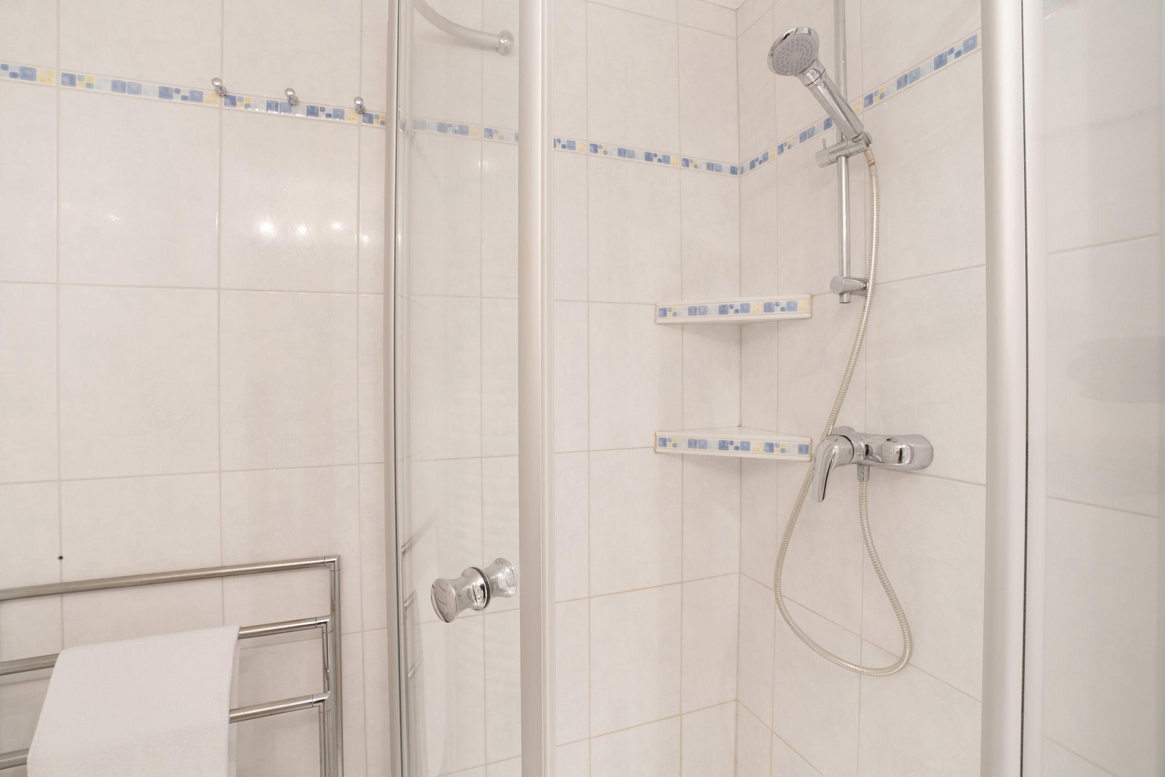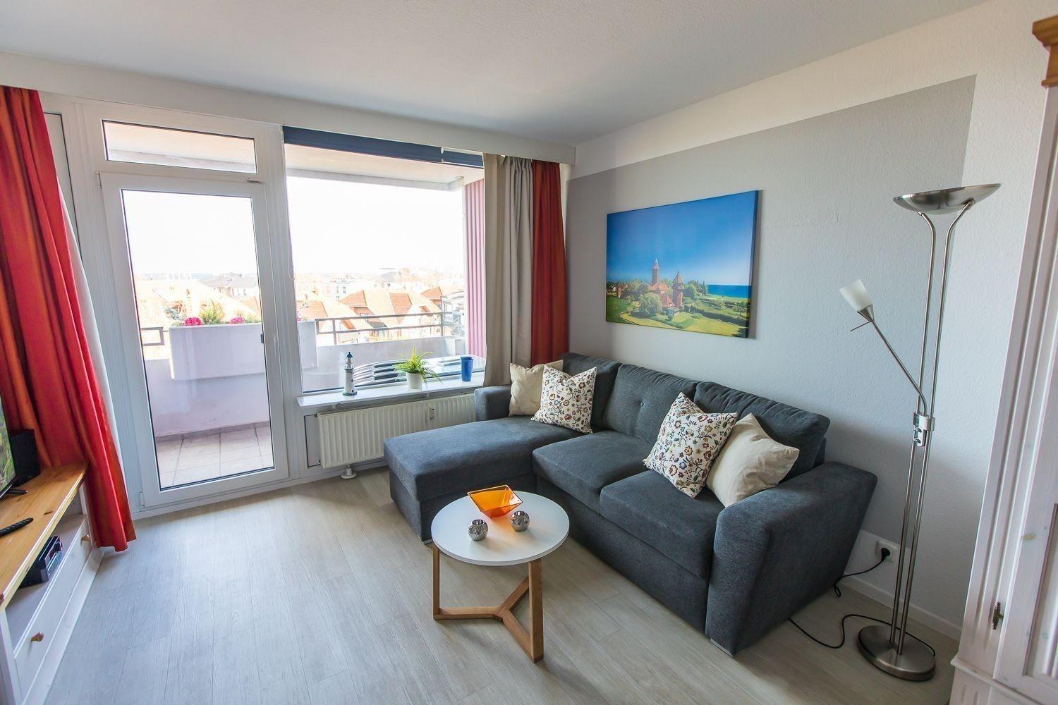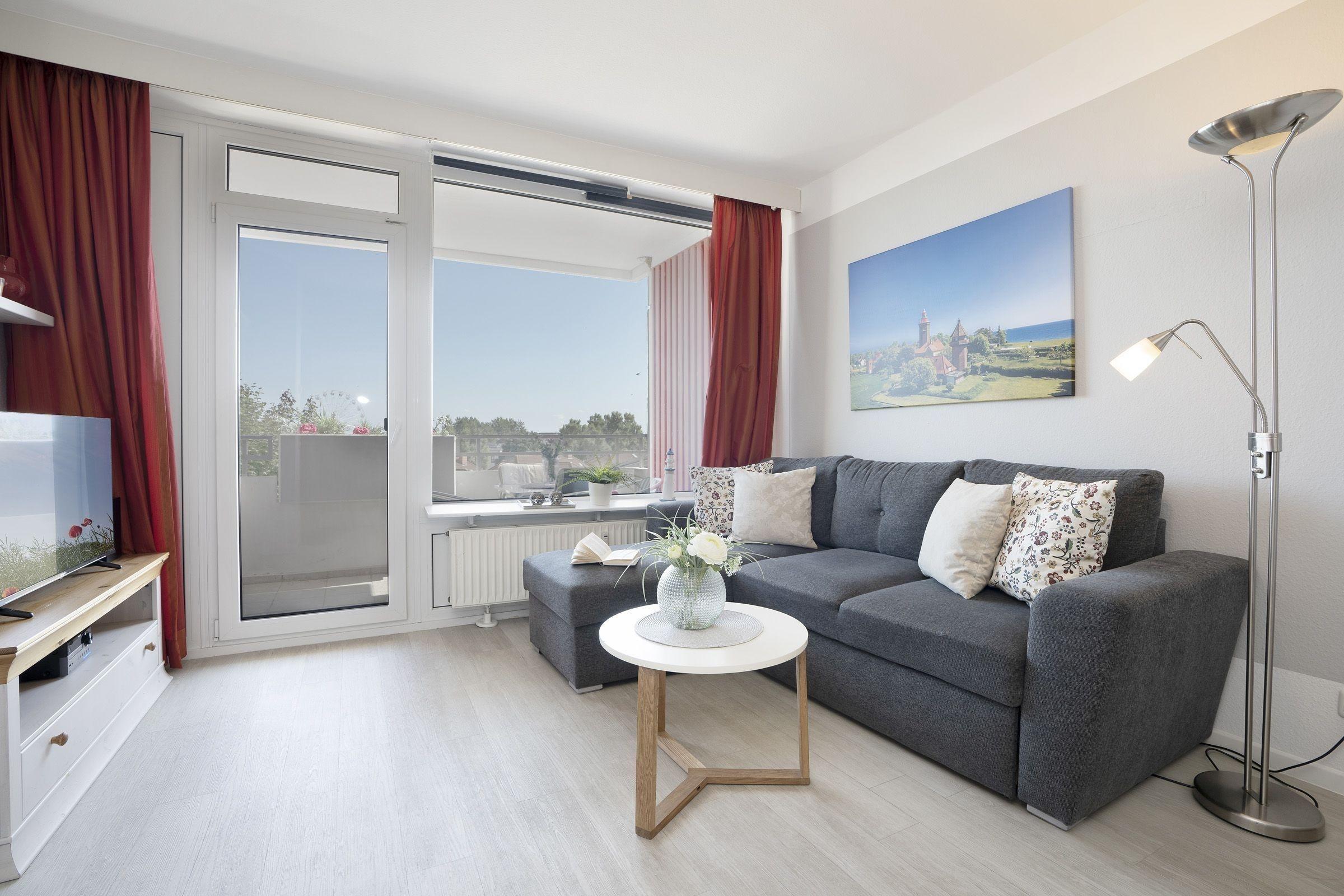 Die Ferienwohnung "Meeresflüstern" in der 3. Etage des Hauses Berolina bietet Platz für maximal 4 Personen. Sie verfügt über ein Wohn-, Schlafzimmer mit gemütlichem Sofa, TV und direktem Zugang zu einem möblierten Balkon. Abgegrenzt vom Wohnbereich ist ein Schlafbereich mit einem Doppelbett (2 Einzelmatratzen 90x200 cm) und Kleiderschrank. Ein separater Schlafraum mit Schlafsofa (140x200 cm) und Kleiderschrank ergänzt die Ausstattung. Die voll ausgestattete Küche beinhaltet einen Ceranherd, Backofen, Geschirrspülmaschine, Kühlschrank mit Gefrierfach sowie einen Essplatz. Das moderne Badezimmer ist mit Dusche und WC ausgestattet. Gemeinschaftliche Einrichtungen umfassen ein Schwimmbad und Waschmaschinen sowie Trockner auf den Etagen 1 bis 4 (Münzautomat). Haustiere sind gegen Gebühr willkommen. Es handelt sich um ein Nichtraucherdomizil.