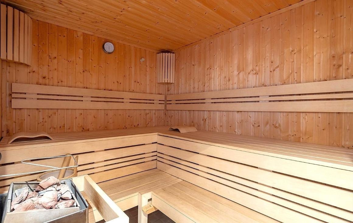 Hier erwartet Sie auf ca. 43m² eine schicke Ferienwohnung 2007 "Strandhotel Whg.33" mit Balkon, Sauna, Pool, einem Schlafzimmer, ein Duschbad, eine Küche und ein Wohn-/Esszimmer mit Meerblick für bis zu 2 Personen.