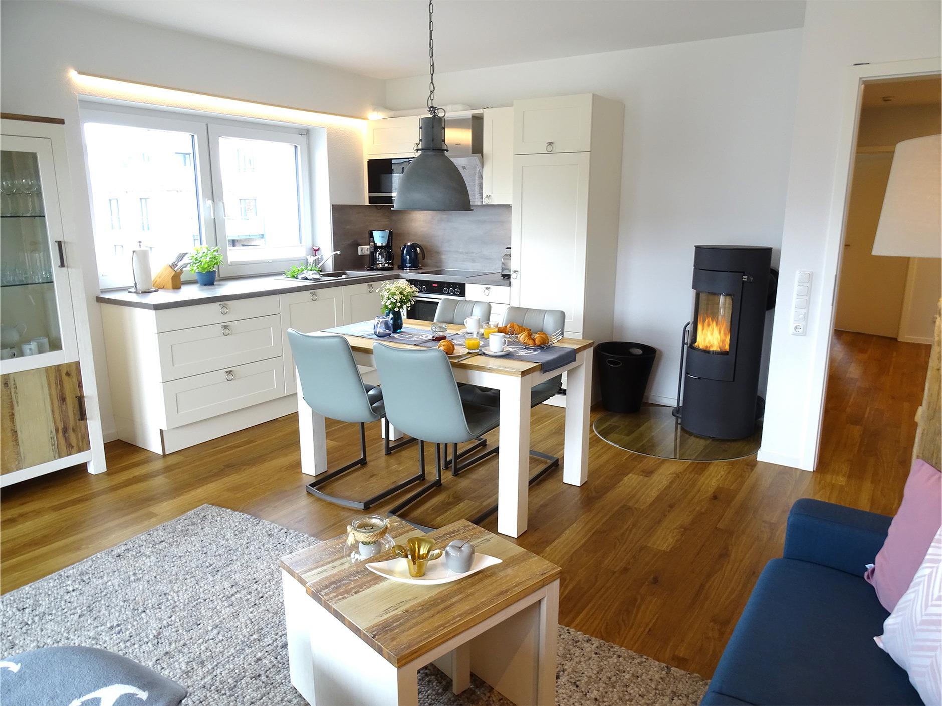 Herzlich willkommen im Gode Wind Quartiere, diese moderne Neubauferienwohnung befindet sich im Obergeschoss des Hauses und bietet Platz für 4 Erwachsene und 1 Kleinstkind.