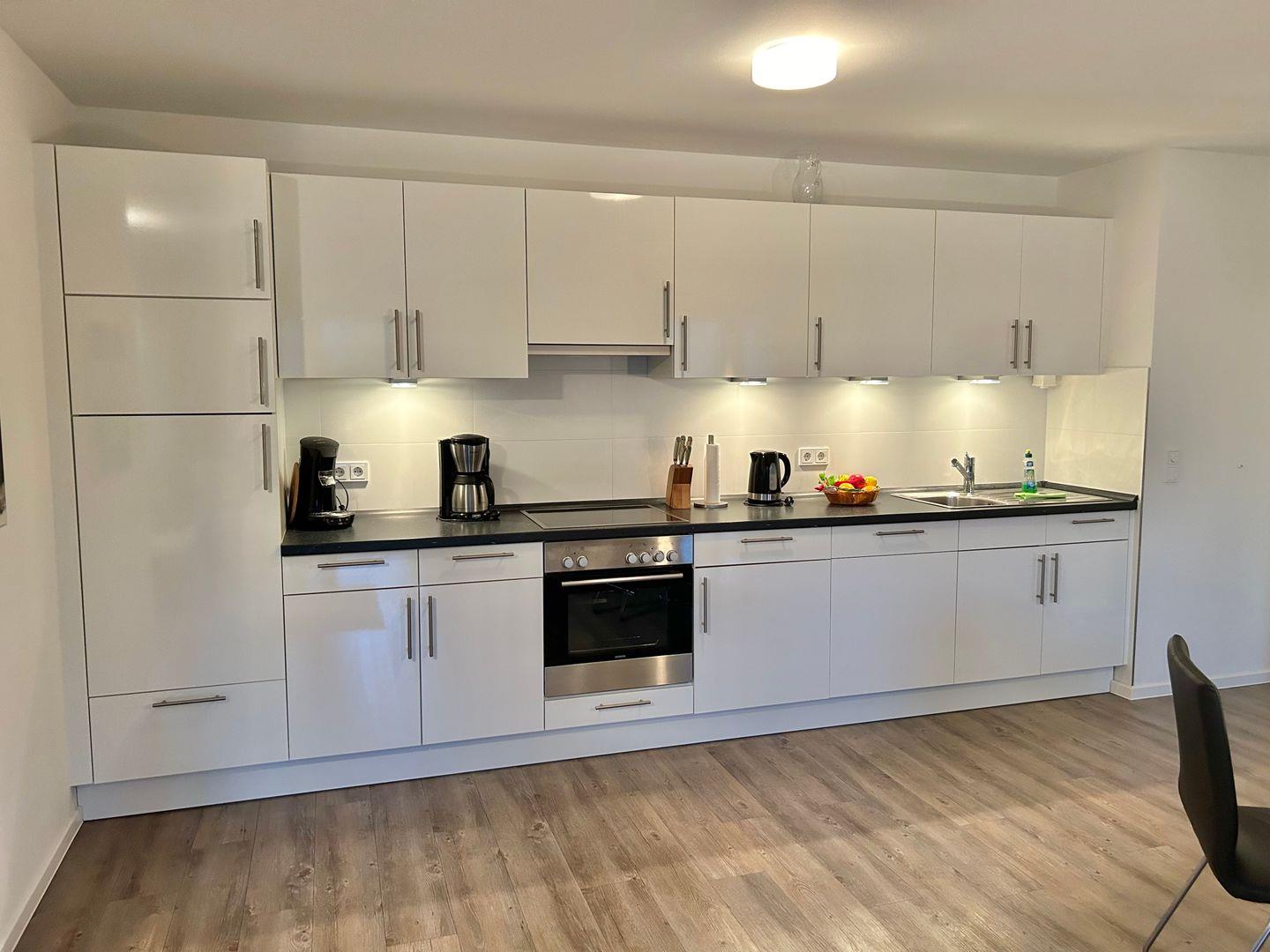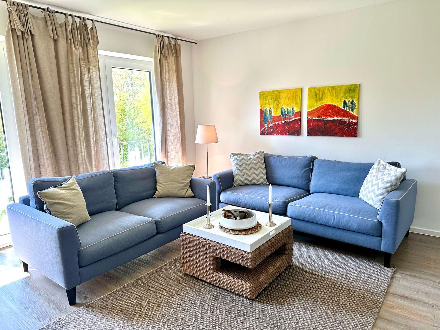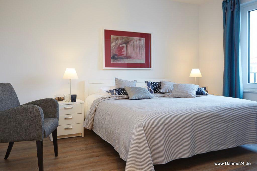 Exklusive drei Zimmer Ferienwohnung im Obergeschoss mit Sonnenbalkon und mit gehobenem Komfort. Diese Wohnung verfügt über ein Schlafzimmer mit Doppelbett (2 x 90x200 cm), ein Kinderzimmer mit zwei Einzelbetten (90x200 cm) und sind mit Verdunklungsvorhängen ausgestattet. Also Platz für bis zu vier Personen. Ein großzügiges Badezimmer lässt hier Wohlfühlatmosphäre aufkommen. Die Couchgarnitur mit den Sitzmöglichkeiten am Essplatz laden zu einer längeren Verweildauer ein. Ein PKW Stellplatz und Waschmaschine sind selbstverständlich. Der Fahrstuhl bringt Sie direkt in die Wohnung, also Koffer schleppen passé. Die sehr geschmackvolle Möblierung prägt das Gesamtbild der Wohnung. Hier fehlt es an nichts. Einziehen, wohlfühlen und erholen! Dieses Objekt hat kein Internet.