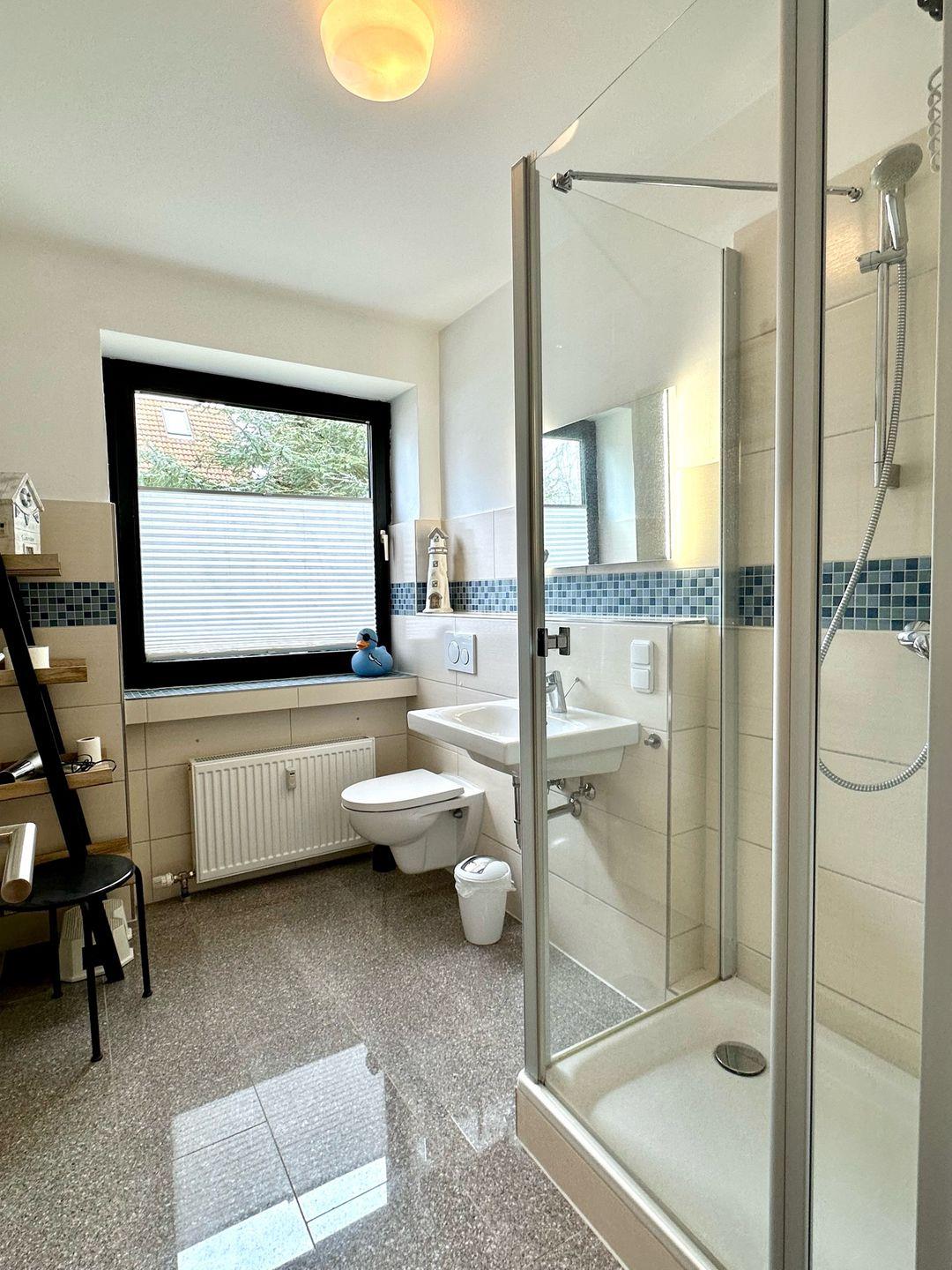 Diese renovierte, zirka 55 m² große zwei Zimmer Wohnung in der Hochparterre mit W-LAN bietet vier Personen Platz. Die Wohnung ist wie folgt aufgeteilt: Flur, ein neues Duschbad mit Föhn, ein Schlafzimmer, eine separate, ganz neue Einbauküche mit Backofen, Geschirrspüler und Kühl-Gefrierkombination, ein Wohn-/Schlafzimmer mit Schrankbett für zwei Personen und Zugang zum großem Süd-/Westbalkon mit Terrassenmöbeln. Zur Wohnung gehört ein fester PKW Stellplatz und im Keller kann gegen eine Gebühr die Waschmaschine genutzt werden. Die kurze Entfernung zum Strand ermöglicht dem Gast einen erholsamen Ostsee-Urlaub! Ihre Fahrräder dürfen Sie gerne in der Fahrradgarage unterstellen. Der perfekte Platz für Ihren geruhsamen Ostseeaufenthalt. Ein kleiner, lieber Hund ist herzlich willkommen!