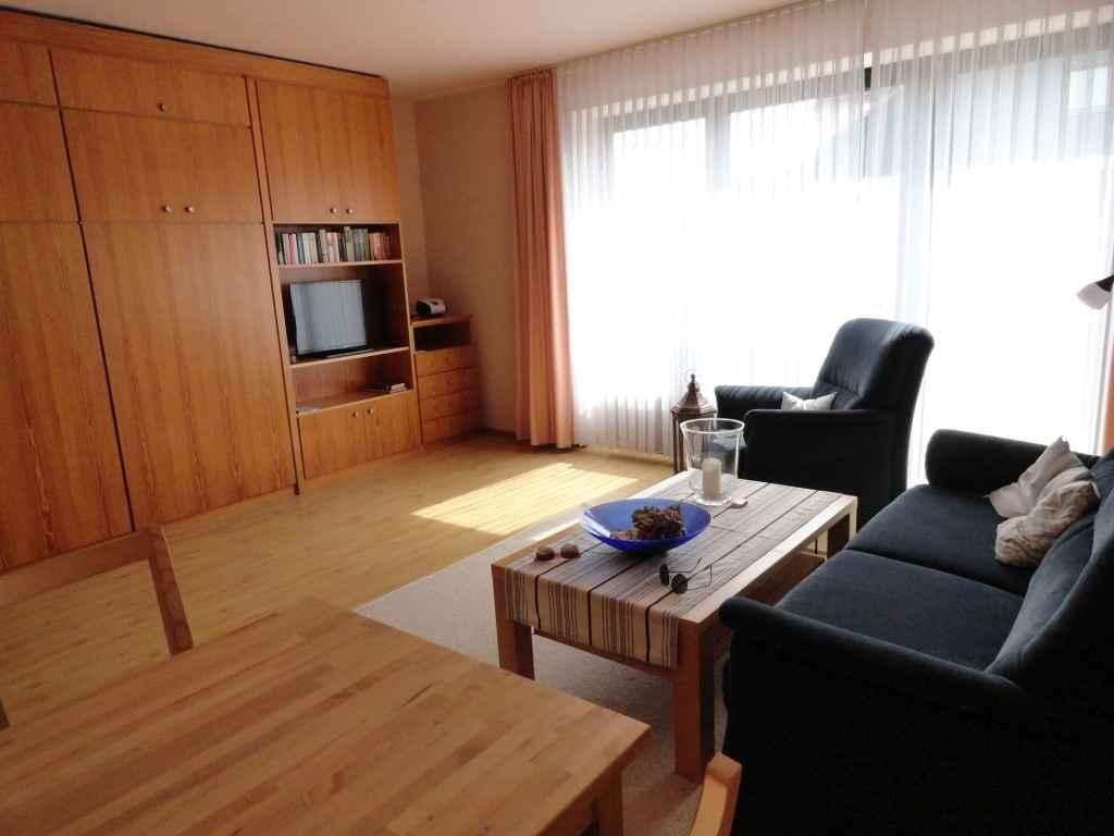 Diese zwei Zimmer Ferienwohnung mit zirka 55 m² im 1.OG mit W-LAN bietet Platz für bis zu vier Personen. Sehr gemütlich und geschmackvoll eingerichtet für eine entspannte Atmosphäre Die Wohnung ist wie folgt aufgeteilt: Flur, ein Duschbad, ein Schlafzimmer mit Doppelbett (160x200 cm), eine separate Küche, ein Wohn-/Esszimmer mit Schrankbett für zwei Personen und Zugang zum großem Süd-Westbalkon mit Terrassenmöbeln und Strandkorb. Zur Wohnung gehört ein fester PKW Stellplatz und im Keller kann gegen Gebühr die Waschmaschine genutzt werden. Ein Kinderreisebett ist Bestandteil der Wohnungseinrichtung. Ein Kinderhochstuhl kann bei Bedarf evtl. gestellt werden. Ihr wohlerzogener Hund bzw. zwei kleine Hunde dürfen hier gerne auch den "Hundeurlaub" verbringen.