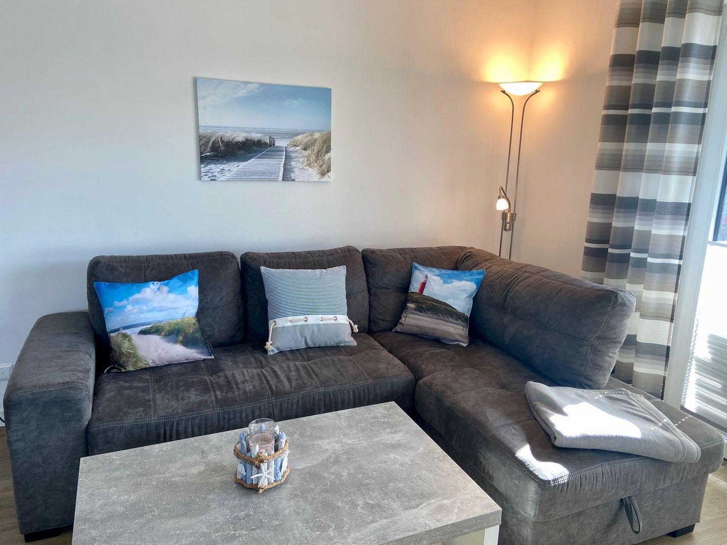 Schöne Ferienwohnung der besonderen Klasse. Liebevoll dekorierte und wohnlich eingerichtete barrierefreie zwei Zimmer Parterre-Ferienwohnung, nur 100 Meter vom Strand entfernt. Diese großzügige Wohnung im gepflegten Haus mit acht Ferienwohnungen verfügt über ein Schlafzimmer, ein Wohn-/Esszimmer mit Sofa und offener Küche und mit direktem Zugang zur bestuhlten Südterrasse mit Strandkorb. Ein modernes Duschbad und ein extra Abstellraum für Ihre Koffer vervollständigen die Ausstattung dieser Wohnung. Der Waschtrockner steht Ihnen kostenfrei in der Wohnung zur Verfügung. Ihr schönes Zweitzuhause für den Urlaub. PKW-Stellplatz direkt am Haus. Die direkte Strandnähe macht Ostseeurlaubsträume wahr. Genießen Sie die persönliche Note dieses Hauses und lassen Sie es sich hier gut gehen. Genießen Sie die wundervolle Umgebung und die kurze Wege zum Dahmer Strand. Auch der Wellnessbereich im StrandSpa befindet sich in unmittelbarer Nähe zu dieser schönen Ferienwohnung.